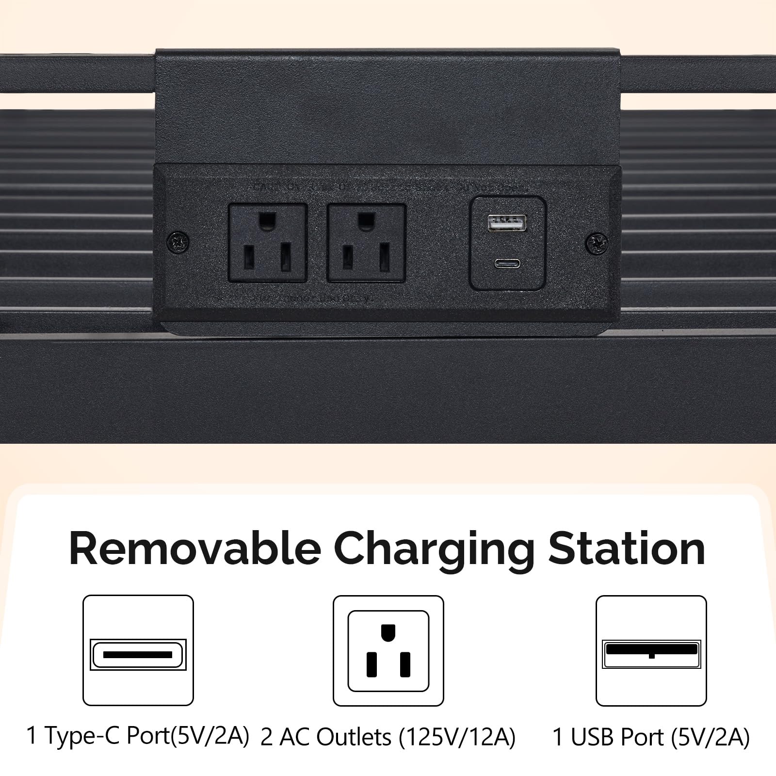 【PRACTICAL DESIGN】With 8" of space beneath the bed, you have plenty of room to get creative with storage. Whether it's storing toys, books, or extra bedding. The removable charging socket is a standout feature. With 1 Type - C port, 1 USB port, and 2 AC outlets, it can accommodate all your electronic gadgets, from smartphones to tablets and laptops.