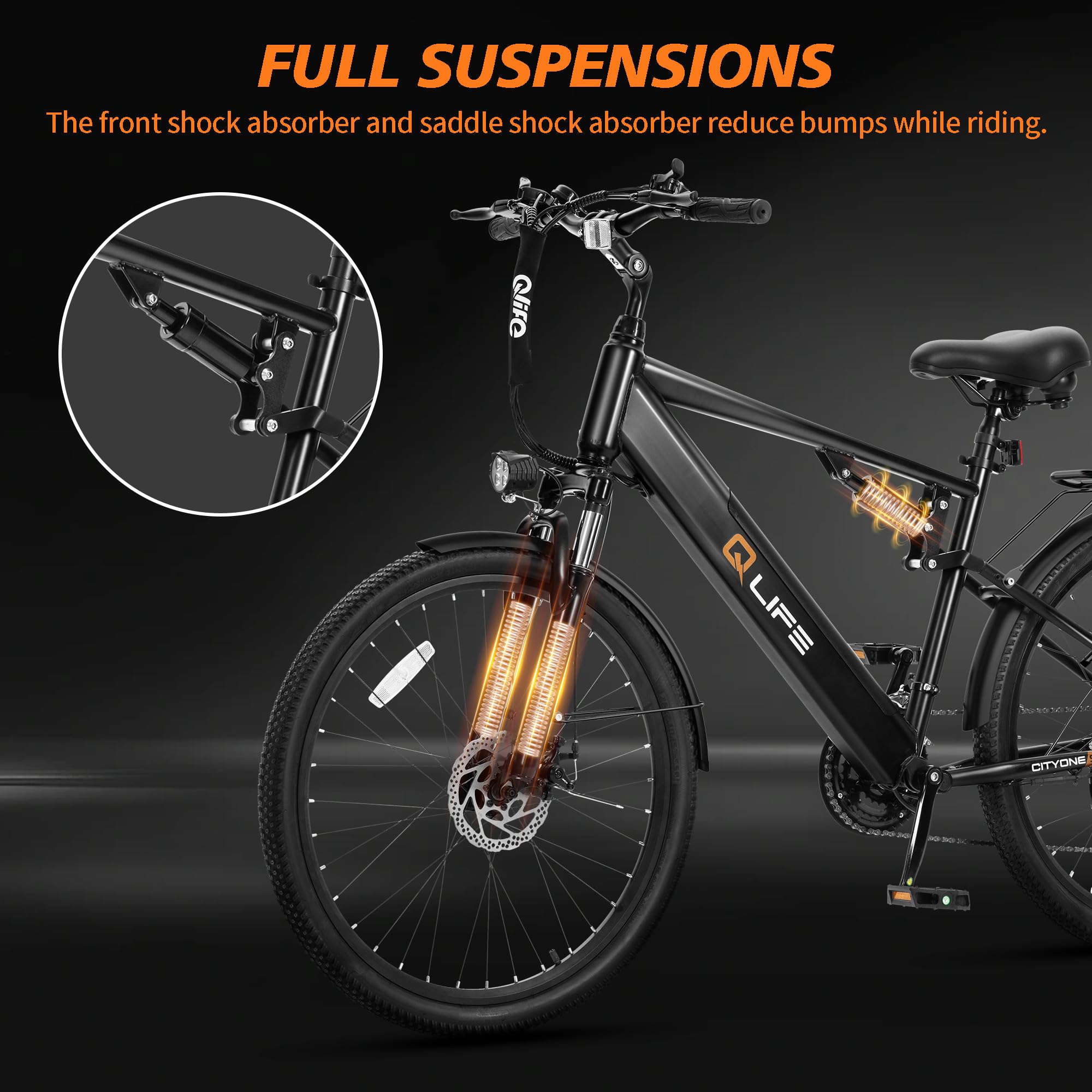 Suprem Riding Experience - The Cityone-SO Ultra electric bike is equipped with an LCD screen that displays key information such as speed, battery level, and assist level. Our bike also features excellent dual front suspension with key, front lights and rear Reflective Sheet for a comfortable and safe riding.