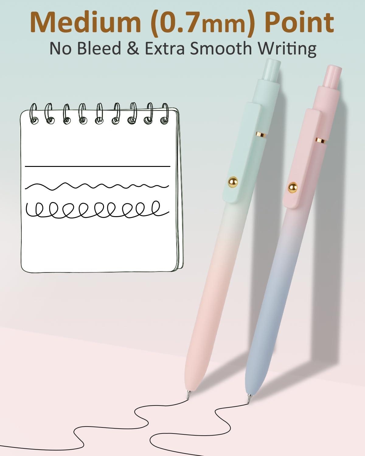 Medium Point: 0.7mm medium point distributes ink beautifully for crisp writing. Enjoy a smooth writing experience with these 12pcs black gel pens that glide effortlessly across the page