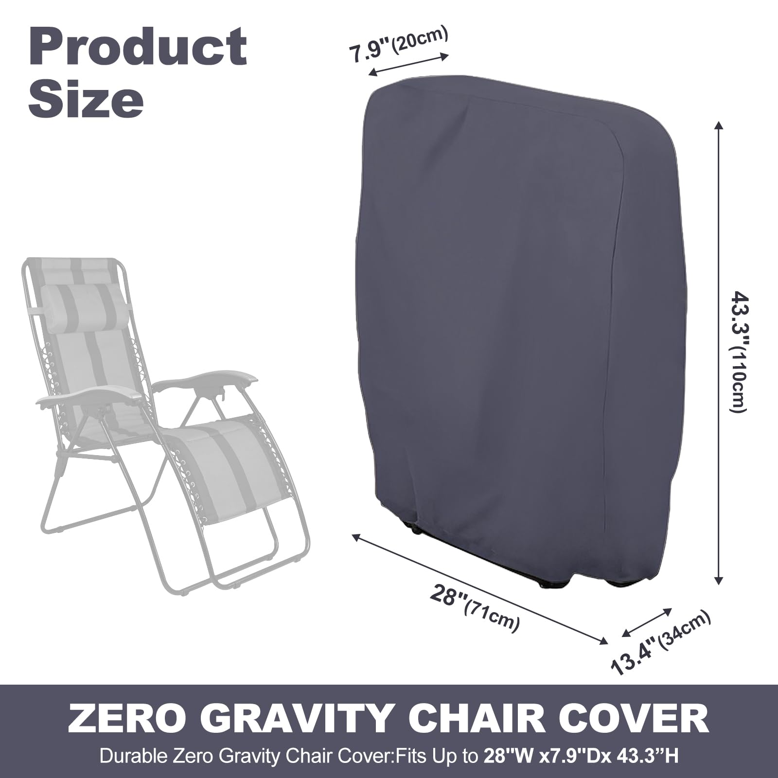 【Universal Size】This zero gravity chair covers owns an unfolded size of 28"W x 13"D x 43"H, which will protect your folding chair from rain, snow, frost, dust etc. Please check that your furniture and equipment are the right sizes before you purchase.