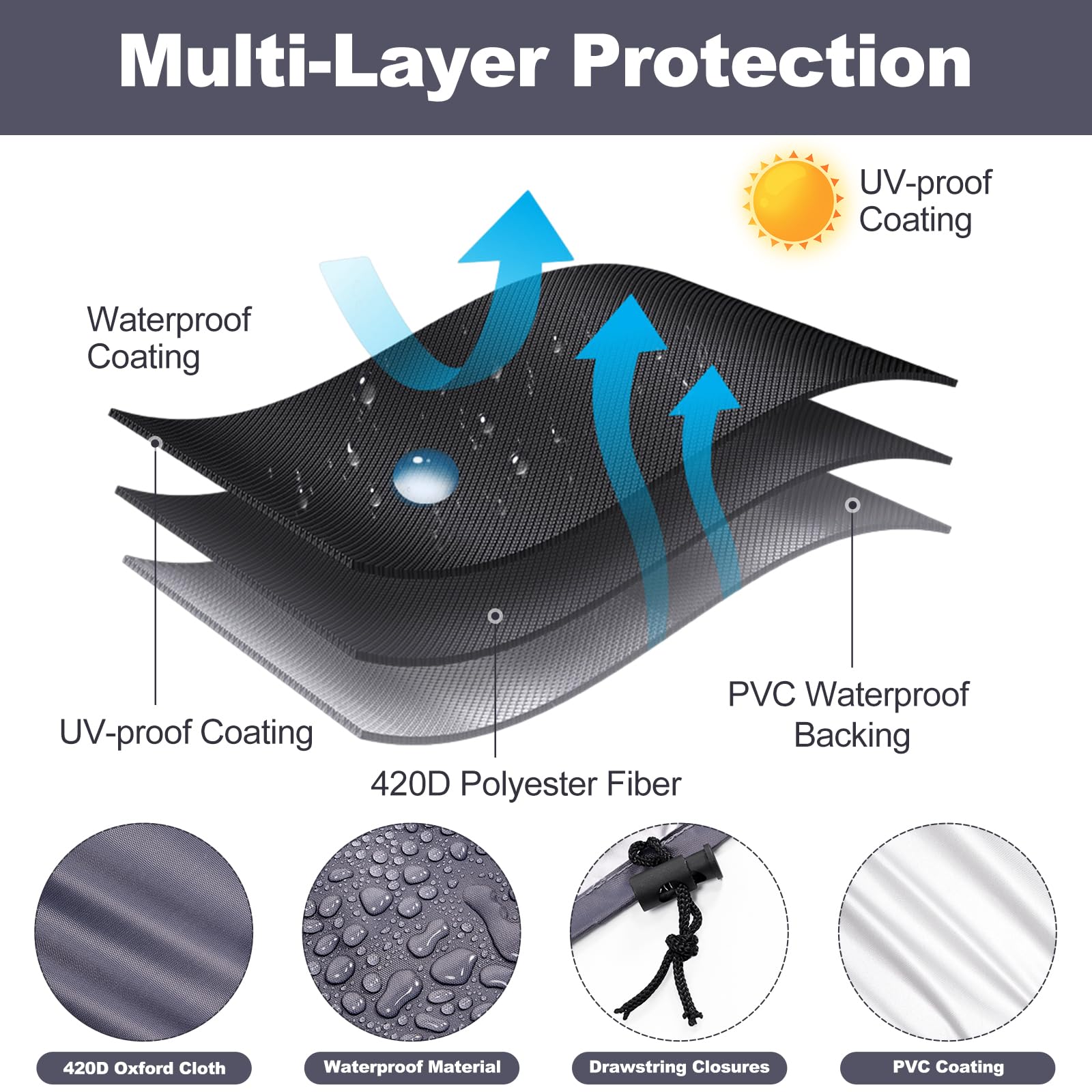 【Premium Quality】With an extra UV coating,the outdoor furniture covers is made of 210D oxford fabric materal. And this patio chair covers just only needed to wipe with a damp cloth and the dirt will disappear quickly.