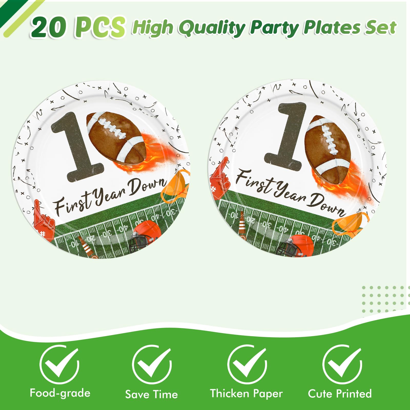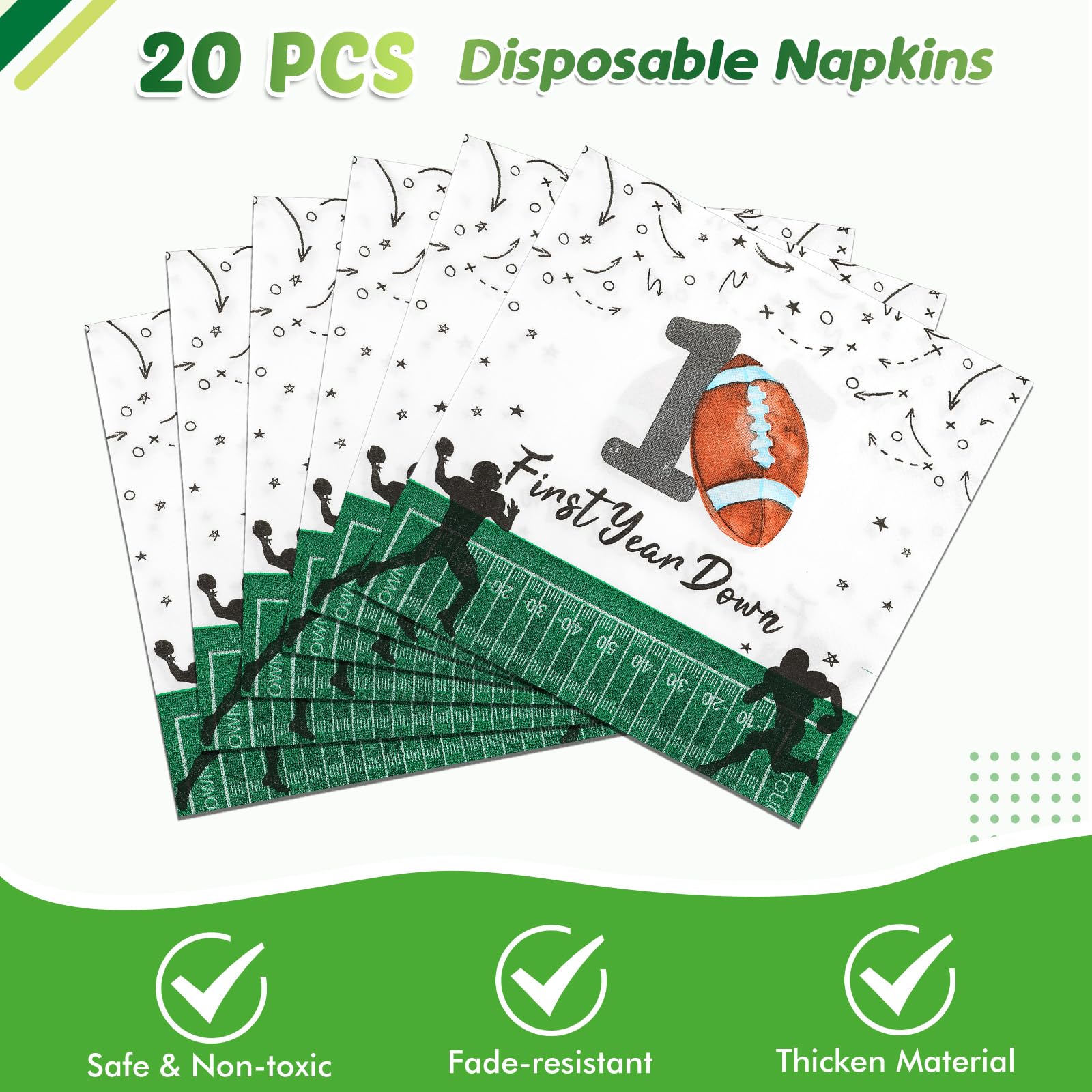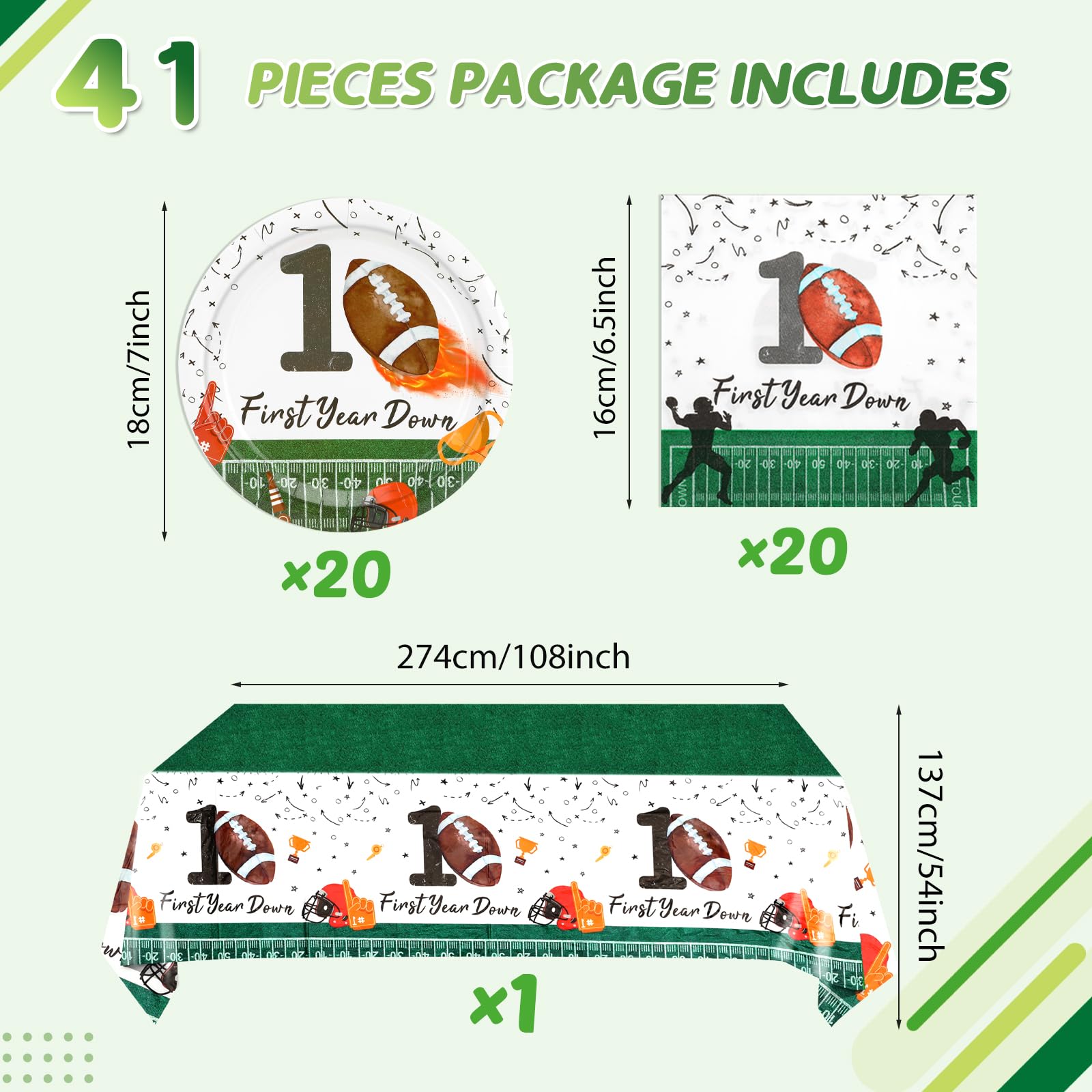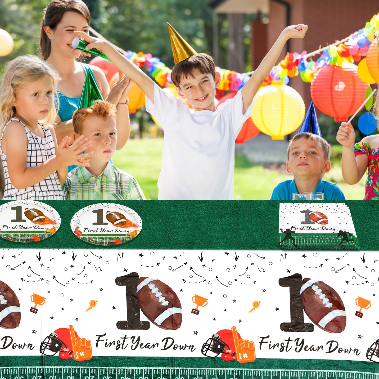 【Serve 20 Guests】This Football 1st birthday party kit has all you need for 20 guests, includes 20pcs 7'' plates, 20pcs paper napkins and 1pcs tablecover