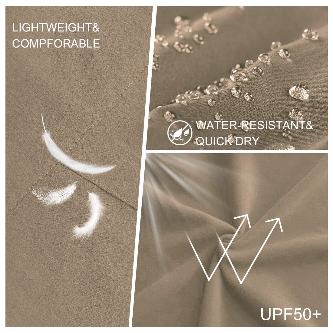 【Premium Fabric】:Men's hiking pants made of 90% nylon and 10% spandex, a 4-way stretch fabric that is rapid drying, lightweight, water resistant, and very durable for the weight, commonly used to make travel pants. Hiking pants men can successfully stop water from splashing; However, prolonged immersion in water will render its water-resistant function useless. These mens work pants are ideal for outdoor activities for its fast dry fabric.
