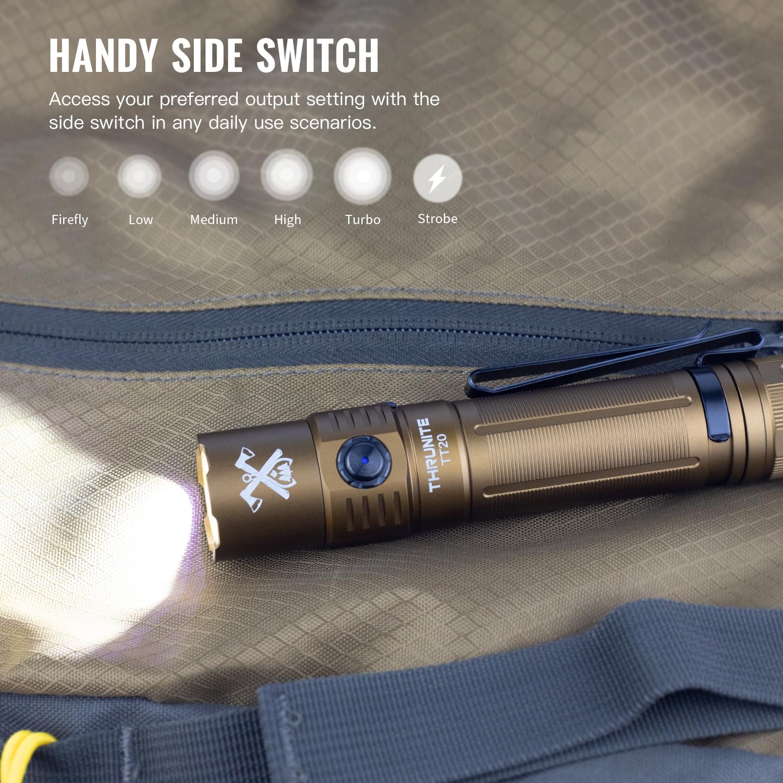 Rechargeable & Convenient: Includes a THRUNITE USB-C rechargeable battery with built-in charging indicator. Red means charging, blue means fully charged—perfect for long-term use during camping trips or prepping for emergencies.