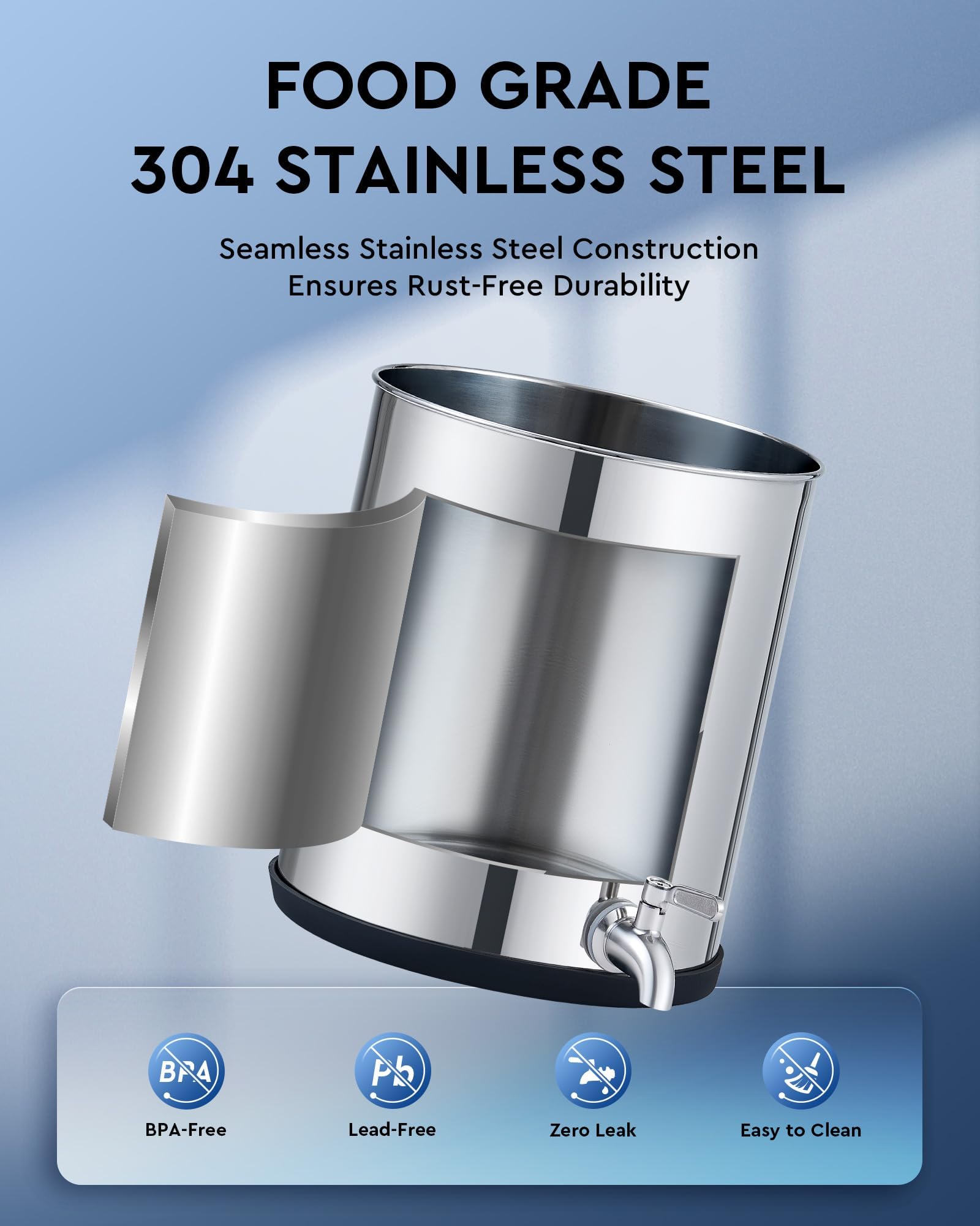 Food Grade Material: Compliant with NSF/ANSI 42 standards and crafted from food-grade stainless steel, our gravity water filtration system offers safety and reliability by eliminating BPA, lead, and corrosion