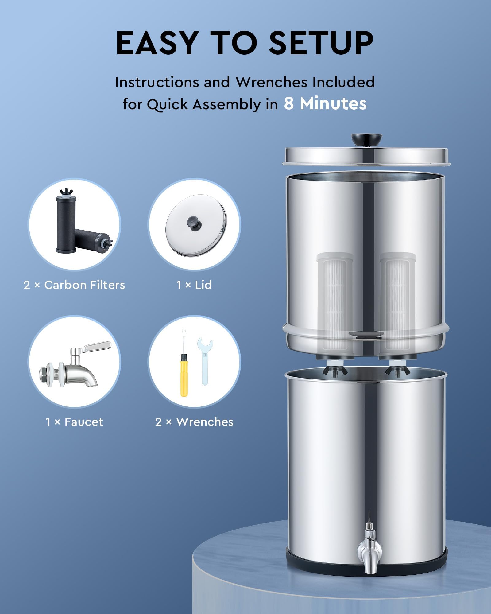 Quality Water, Quality Life: This gravity-fed water filter system from CO-Z delivers clean, fresh water without electricity. With a 2.25-gallon capacity, it provides ample supply for a family of four, keeping everyone healthy and hydrated