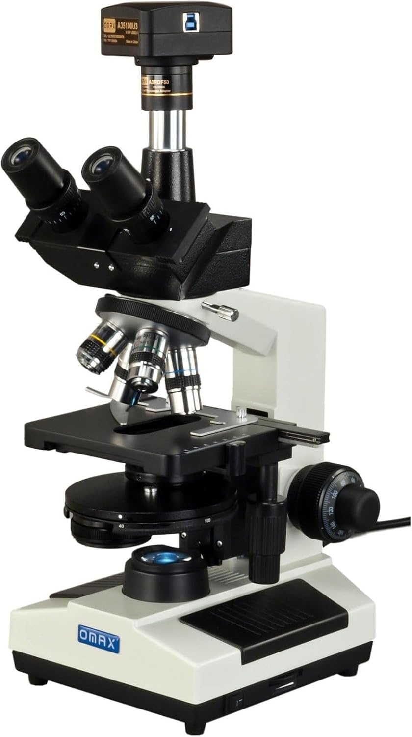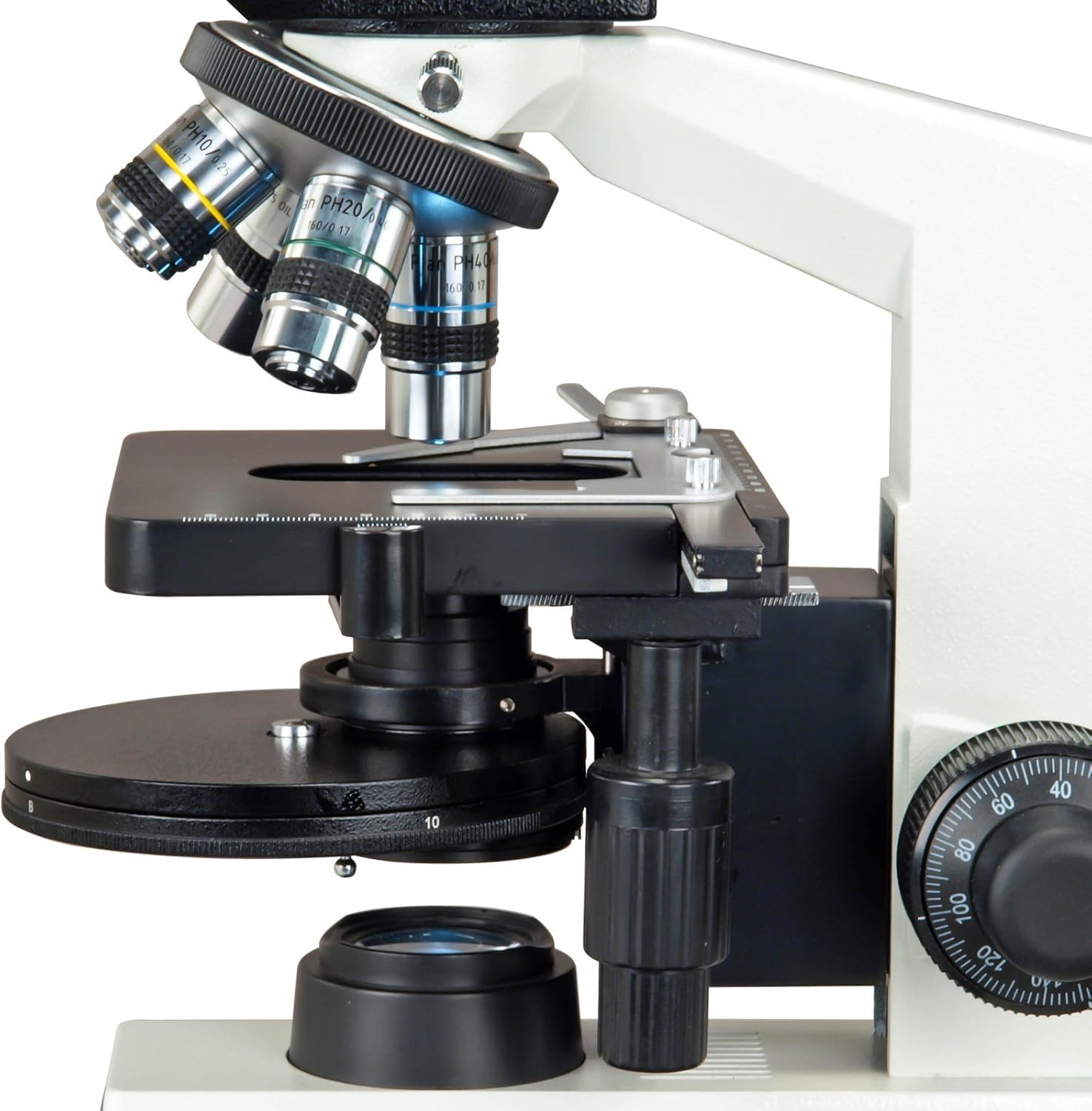 This professional trinocular compound microscope provides phase contrast/brightfield microscope system and a super speed 18MP USB 3.0 digital imaging system. The compound microscope features an optical system for simultaneously observing images through eyepieces and an adjustable trinocular port. It comes with LED illumination with variable intensity, Abbe NA1.25 condenser with iris diaphragm, a complete set of PLAN phase contrast objectives and turret mounted phase plate assembly. It offers six levels of brightfield magnification from 40X to 2500X. The phase contrast kit includes a phase contrast condenser, a centering telescopic eyepiece, four PLAN phase contrast objectives: PH10X, PH20X, PH40X (S), PH100X (S, Oil). It also offers magnification power: 100X-200X-250X-400X-500X-1000X-2500X. The 4912x3684 pixels USB 3.0 digital imaging system that captures still microscope images and live video on computer. The included software is compatible with Windows, Mac OS X and Linux operating systems (see version information below). The Windows software can also be used to make measurements. This phase contrast compound microscope is widely used clinical, biological research and schools, specially for observing live cells.