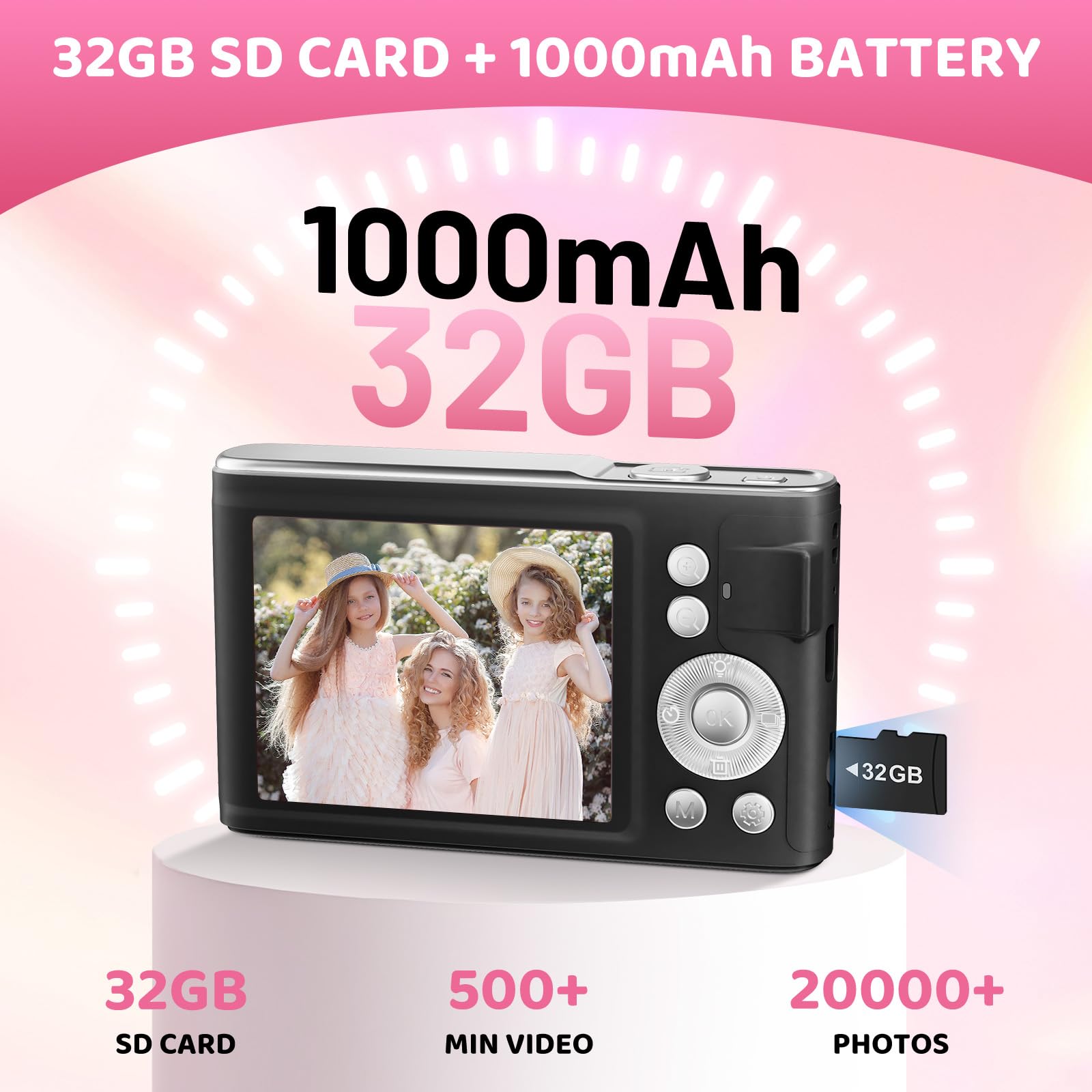 【Perfect Gift, Warranty Service】Digital camera is a perfect gift for boys, girls, teens on birthdays, Christmas, or any important events, a first real camera for kids who love to take videos and pictures.We provide a one-year satisfaction warranty, along with a no-hassle replacement policy, any problem or question with the camera, please contact us for help.
