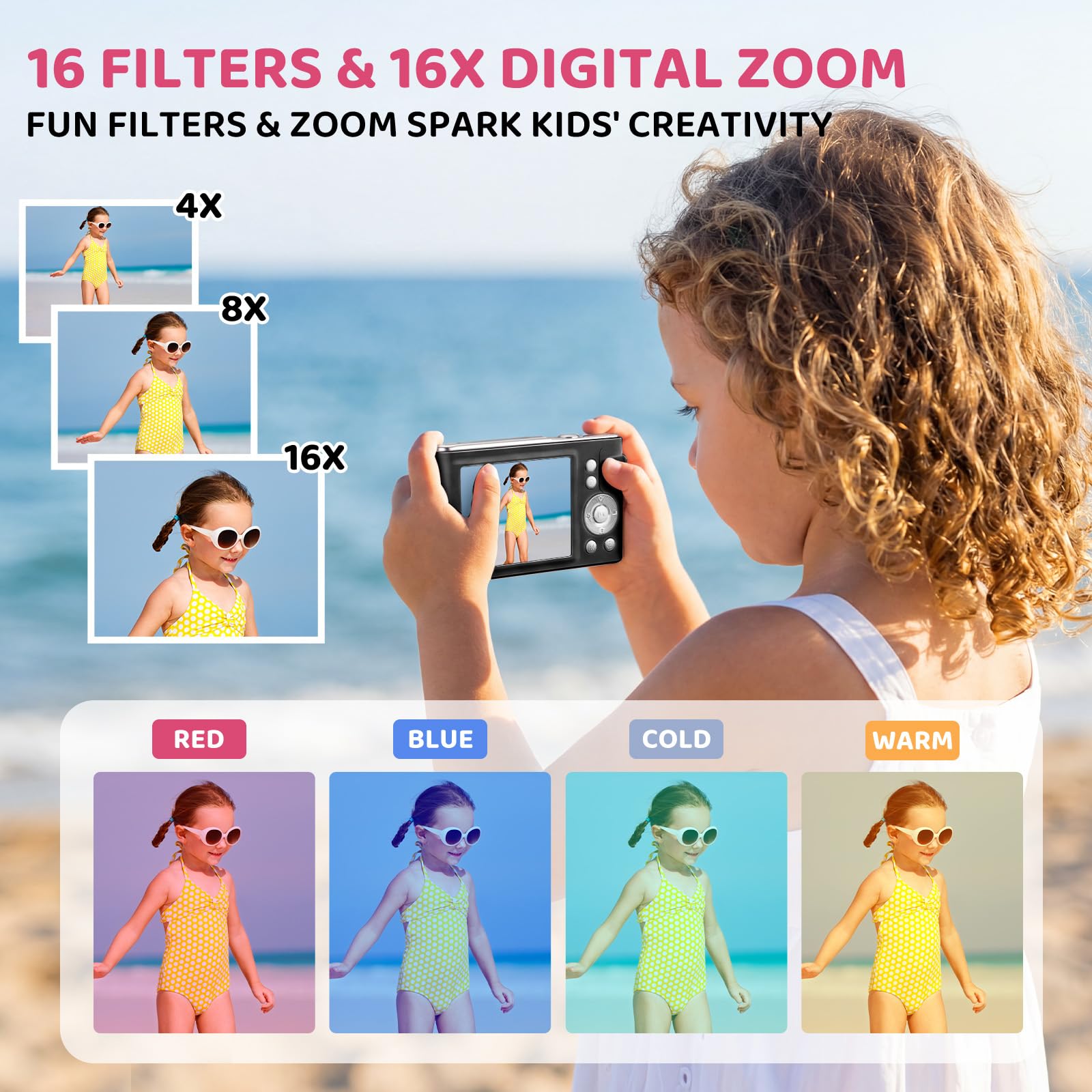【Creative Features for Endless Fun】Get closer to the action with powerful 16X zoom while maintaining crystal-clear image quality. Apply filters for a dramatic sunset, enable anti-shake for action shots, or use the fill light to brighten a dim room. With beauty mode, continuous shoot, and even a webcam function, your creative potential is limitless.