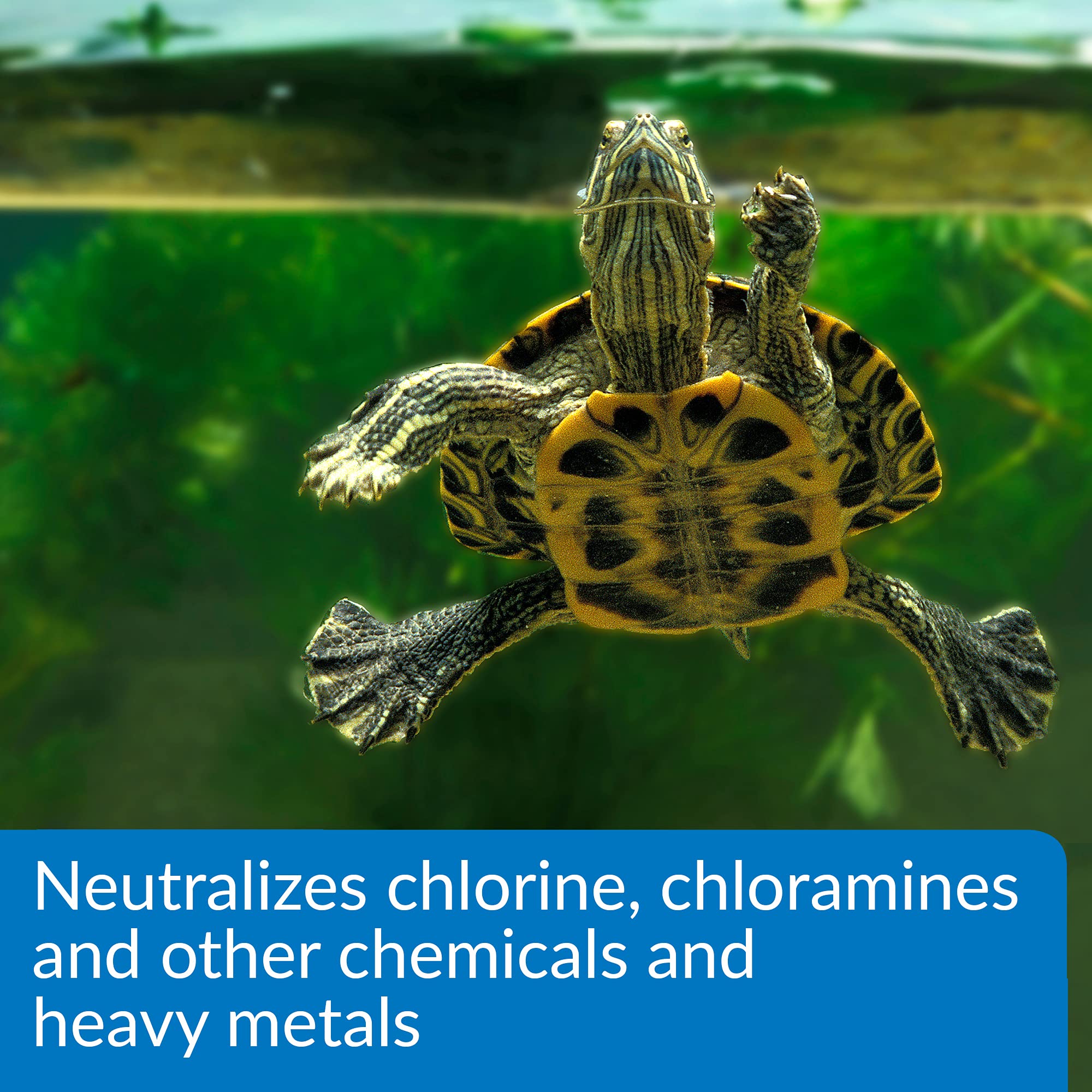 Neutralizes chlorine, chloramines and other chemicals and heavy metals to make tap water safe for aquatic turtles, newts and aquatic frogs