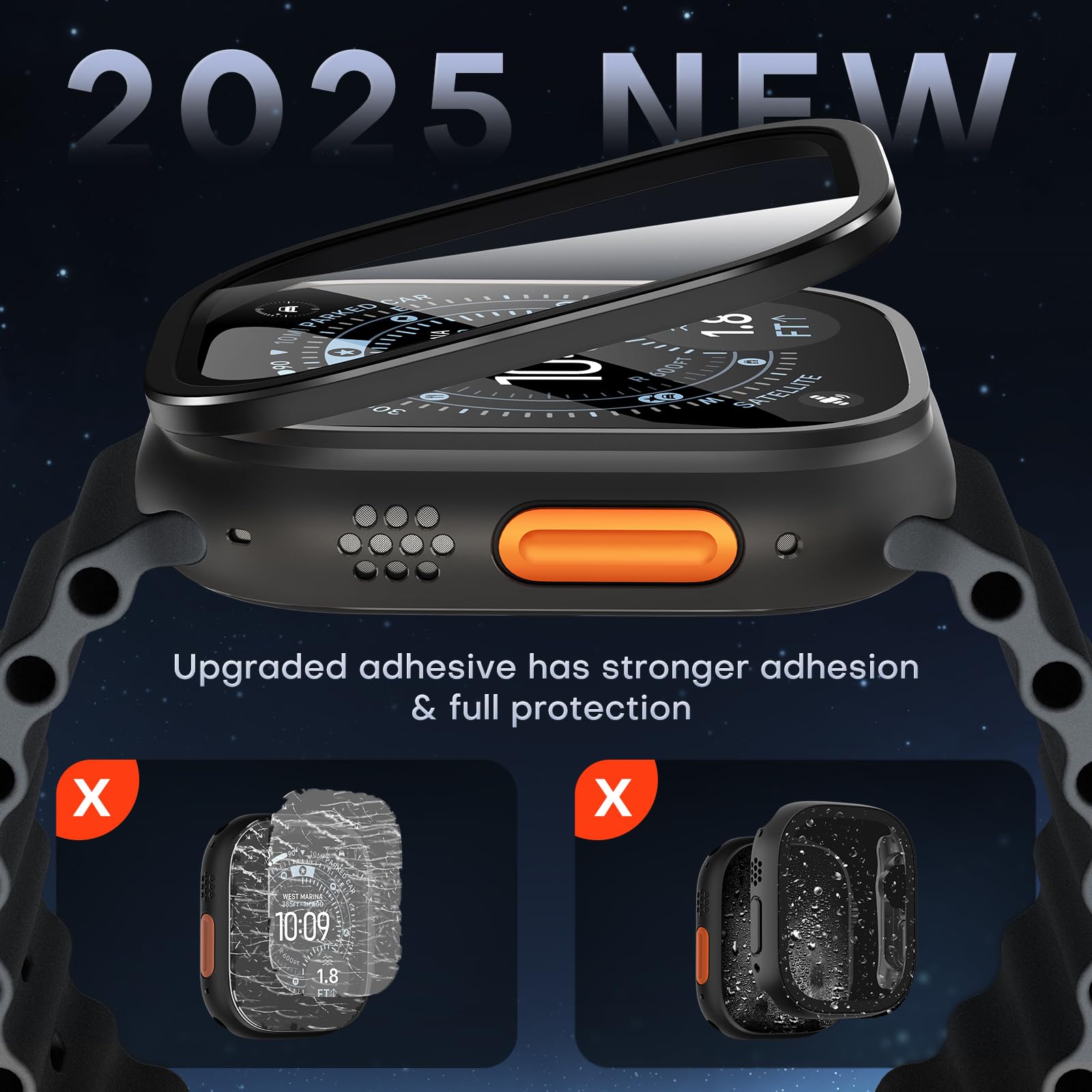 New Upgrade - LϟK New advanced design, specially designed for Apple Watch Ultra 3 / 2 / Ultra screen protector 49mm only, includes 2 packs tempered glass screen protectors with titanium alloy frame. We don't need a bulky case or breakable screen protectors any more