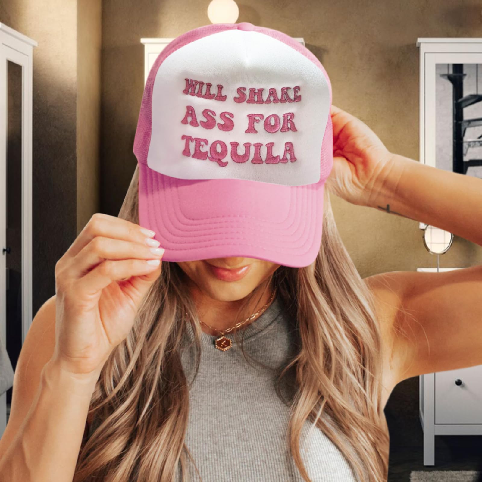 Will Shake Ass For Tequila Hat - Say No To Same Outfit. The Funny Will Shake Ass For Tequila Trucker Hats With The Unique Funny Design, Funny Hats Will Make You Special And Become The Focus In Parties And Daily Life. The Womens Trucker Hat, Show Your Drinking Style
