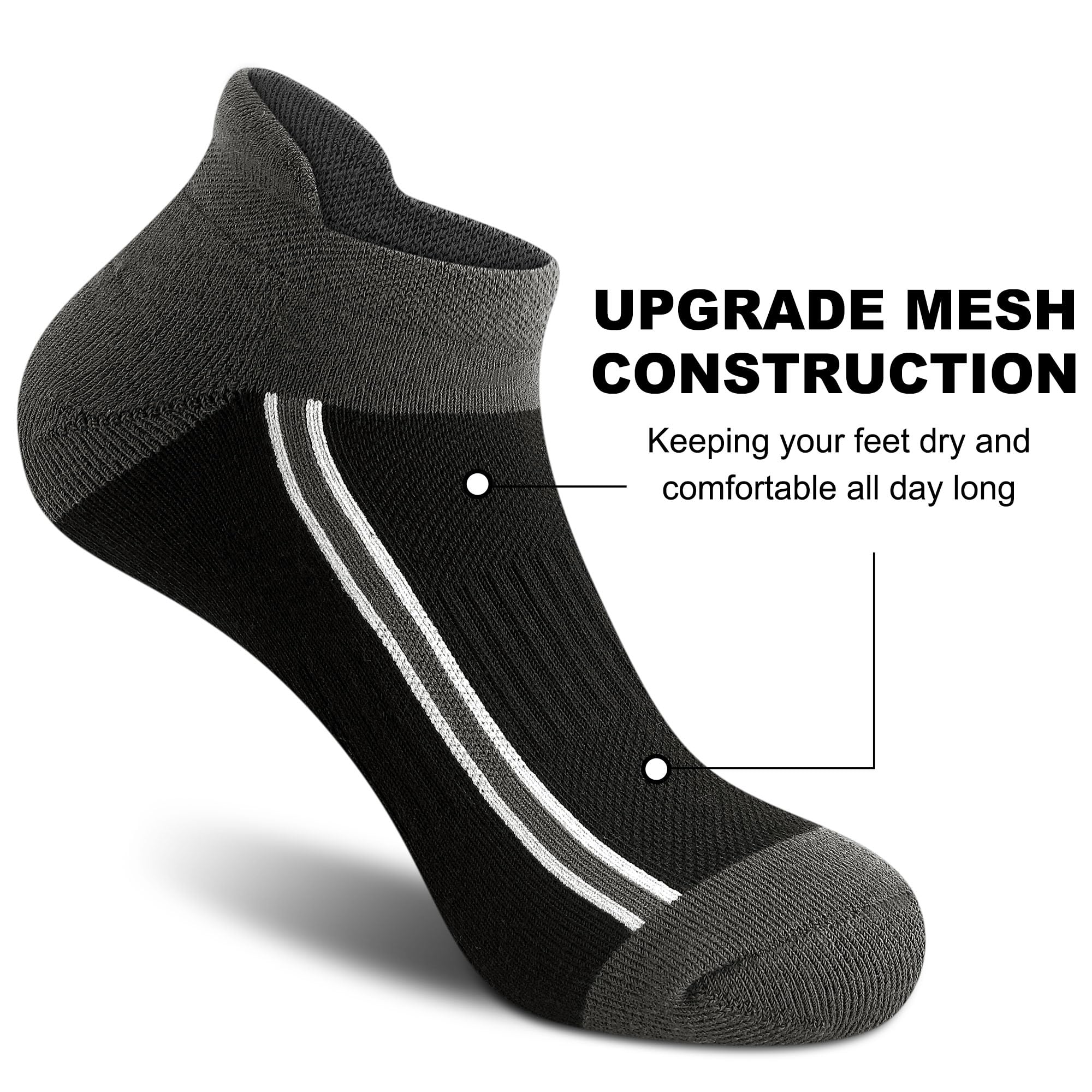 Cushioned Athletic Socks - Our men's ankle socks feature extra cushioning that provides comfort and absorbs impact during athletic activities, reducing the risk of foot fatigue and prevent blisters.