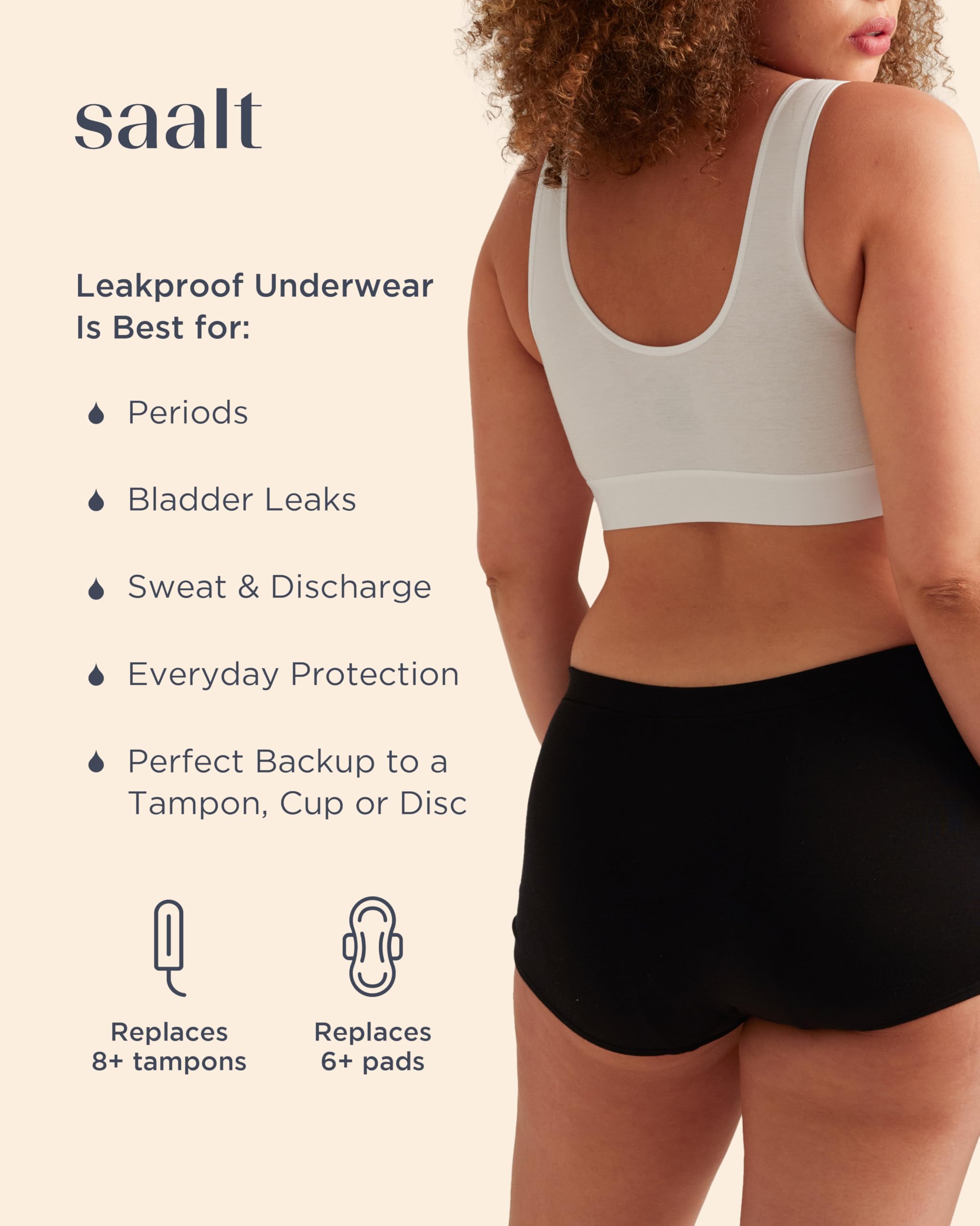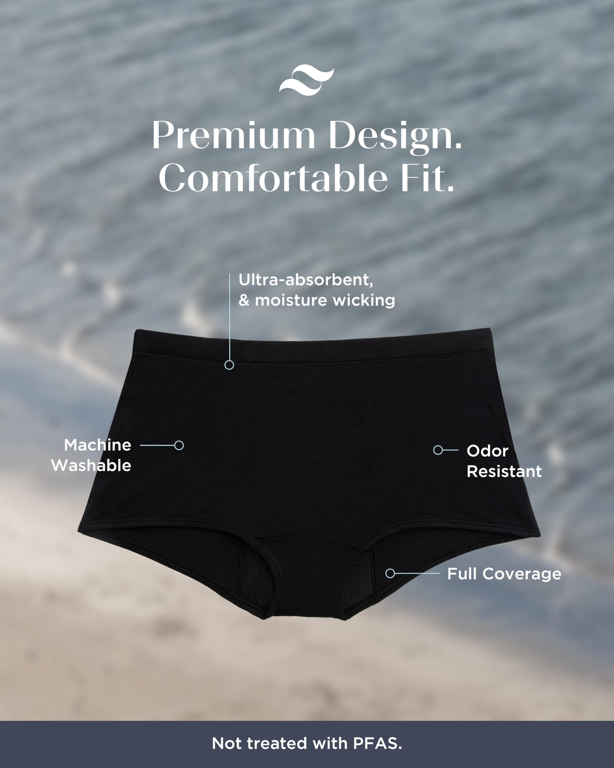 REUSABLE & CONVENIENT FOR ALL LEAKS — Feels like clouds. Works like whoa. You asked, we listened. Our boyshort has extended gusset coverage and now offers super absorbency for all-night comfort and protection for heavy periods, bladder leaks, and postpartum care. Ahhhh. Because this style has more gusset coverage, it packs extra absorbency power, replacing a full 7 pads or 10 regular tampons of flow! Woah. Made to withstand laughing with your best friend, vivacious sneezes, and periods.