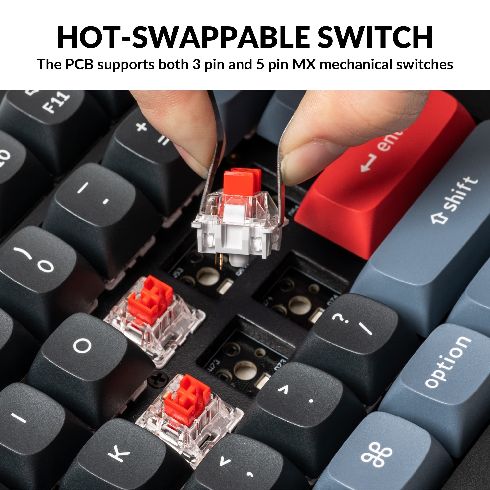 Hot-swappable Support: With the pre-lubed mechanical linear red switch provides unrivaled tactile responsiveness with up to 50 million keystroke lifespan. You can also hot-swap the V6 with almost all of the 3pin and 5pin MX mechanical switches on the market (including Cherry, Gateron, Kailh, Panda, etc.) without soldering required. The PCB-mounted screw-in stabilizer for “big keys” such as space bar, shift, enter, and delete are designed for less wobbliness and smooth performance.
