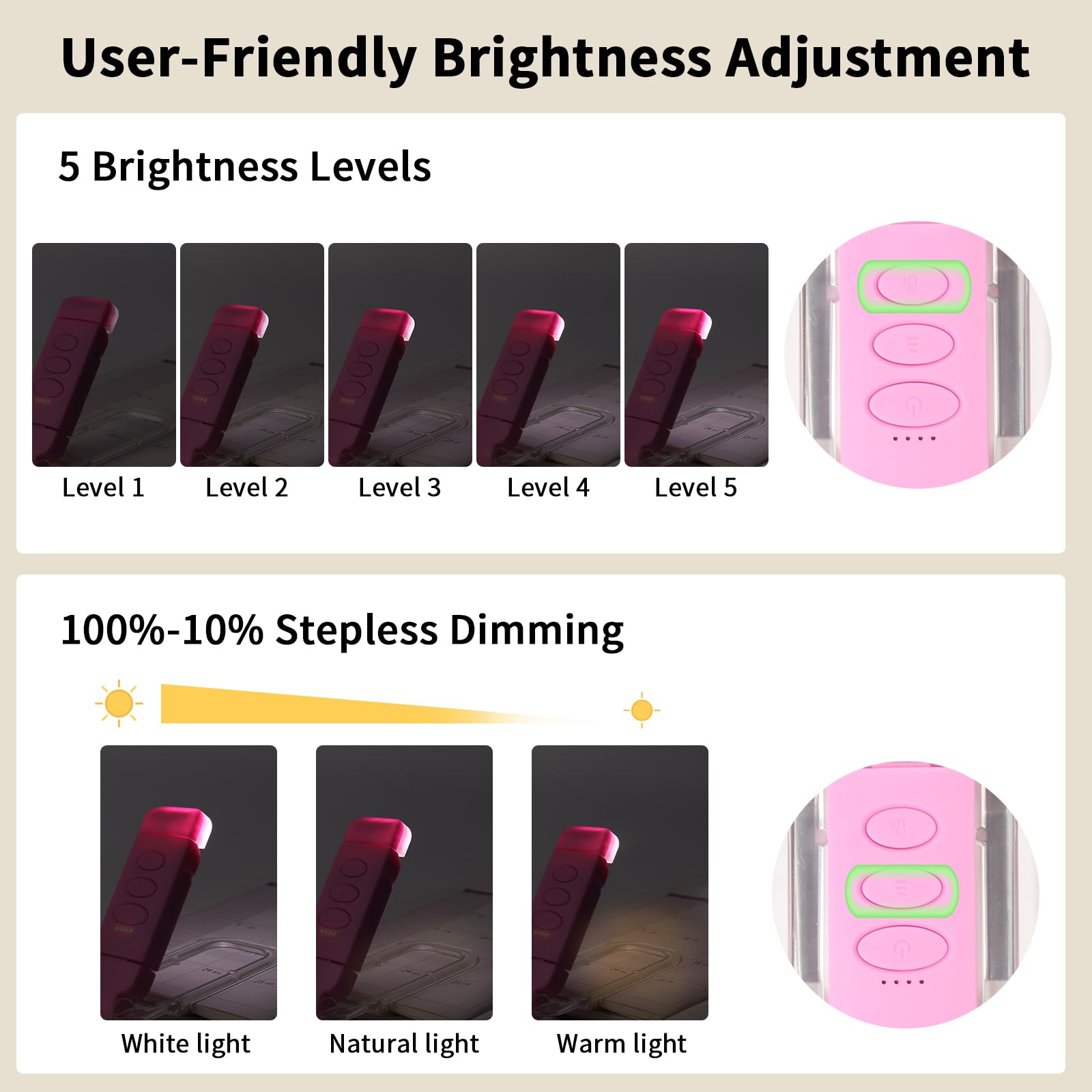 80-Hour Long Runtime:Enjoy 3 Adjustable Color Temperatures And 5 Brightness Levels, Effortlessly Switched With A Single Button Press. Built With A 1000Mah Rechargeable Battery And 4 Led Power Indicators To Show Real-Time Battery Status. Provides Up To 80 Hours Of Continuous Lighting On A Single Charge.