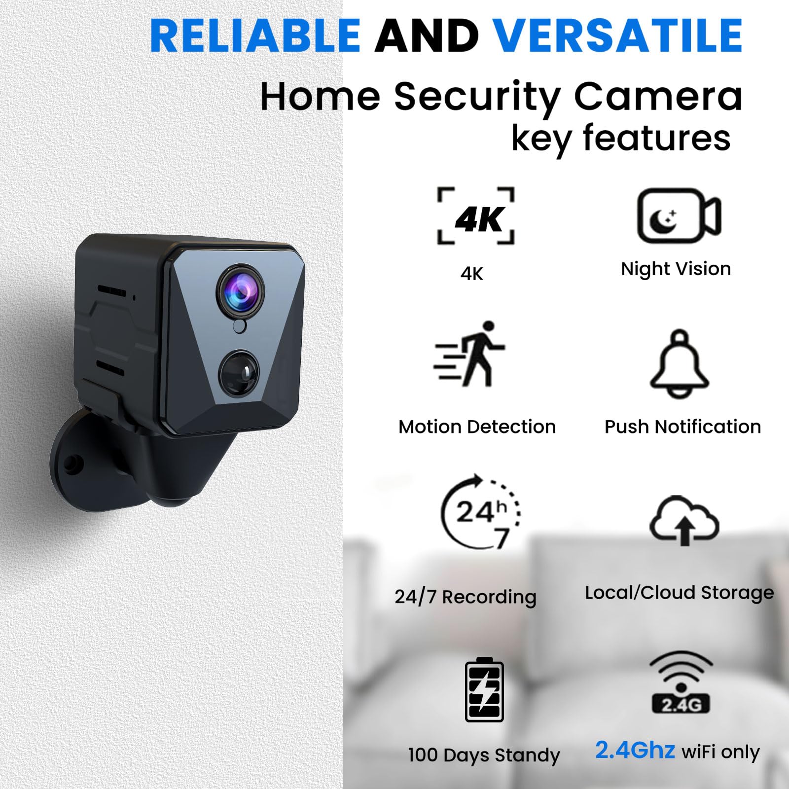 【Why choose us】1. Upgraded 4K resolution 2. Ultra-long battery life and rechargeable battery 3. Clear night vision 4. Sensitive motion detection 5. Free 3-day cloud storage 6. After-sales service at any time