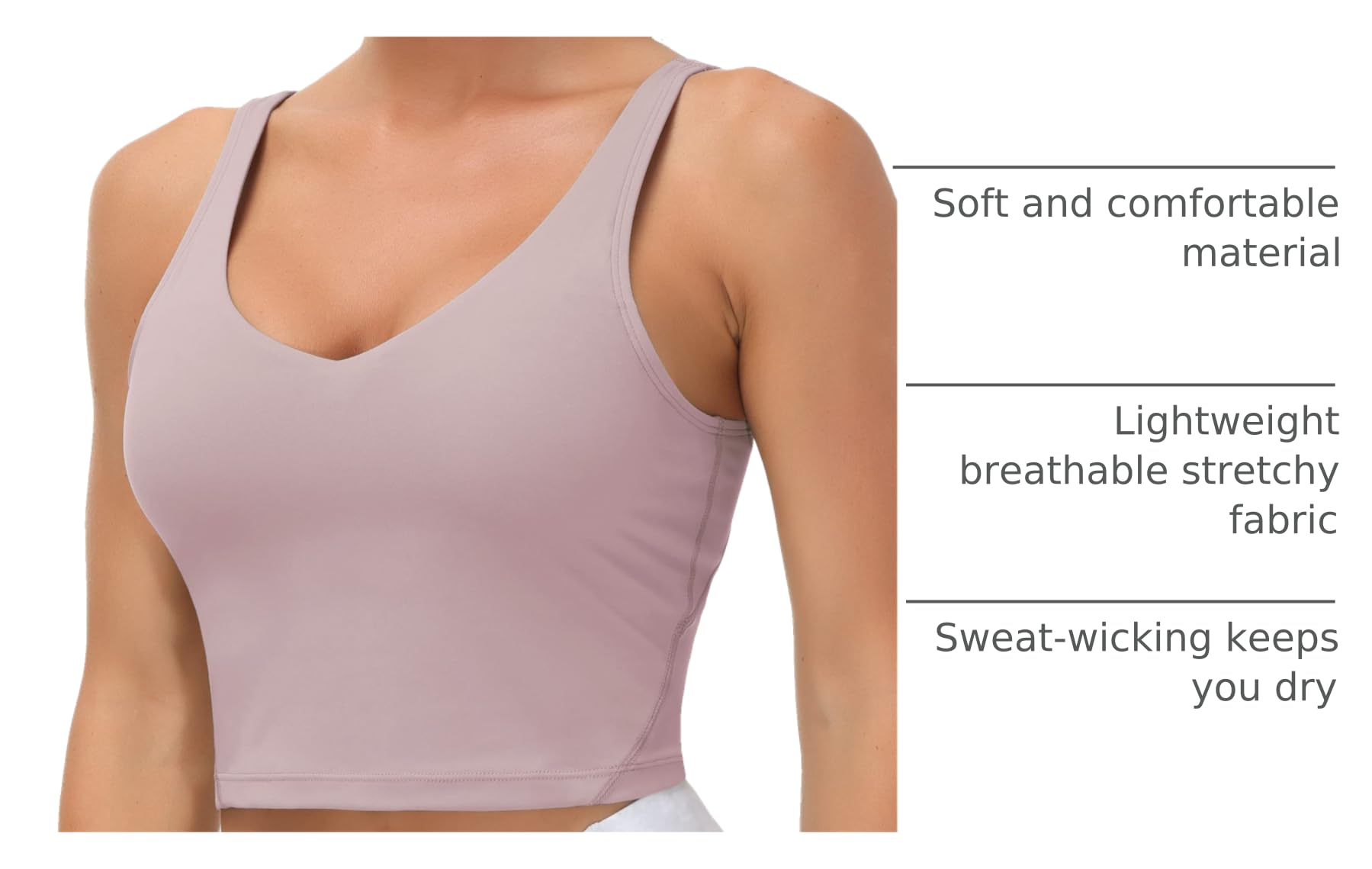Soft and Comfortable Material: Crop tank sports bra made of lightweight, breathable and stretchy fabric, sweat-wicking keep you dry.
