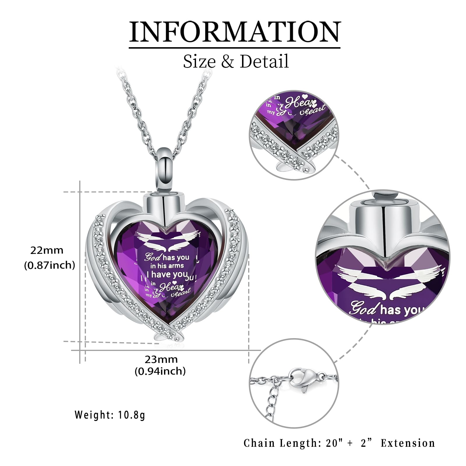 💗【Meaning】Ashes Necklace can be opened on the top, with engraved message "God has you in his arms I have you in my heart", which means your love and blessing for your loved ones and keep them close to your heart.