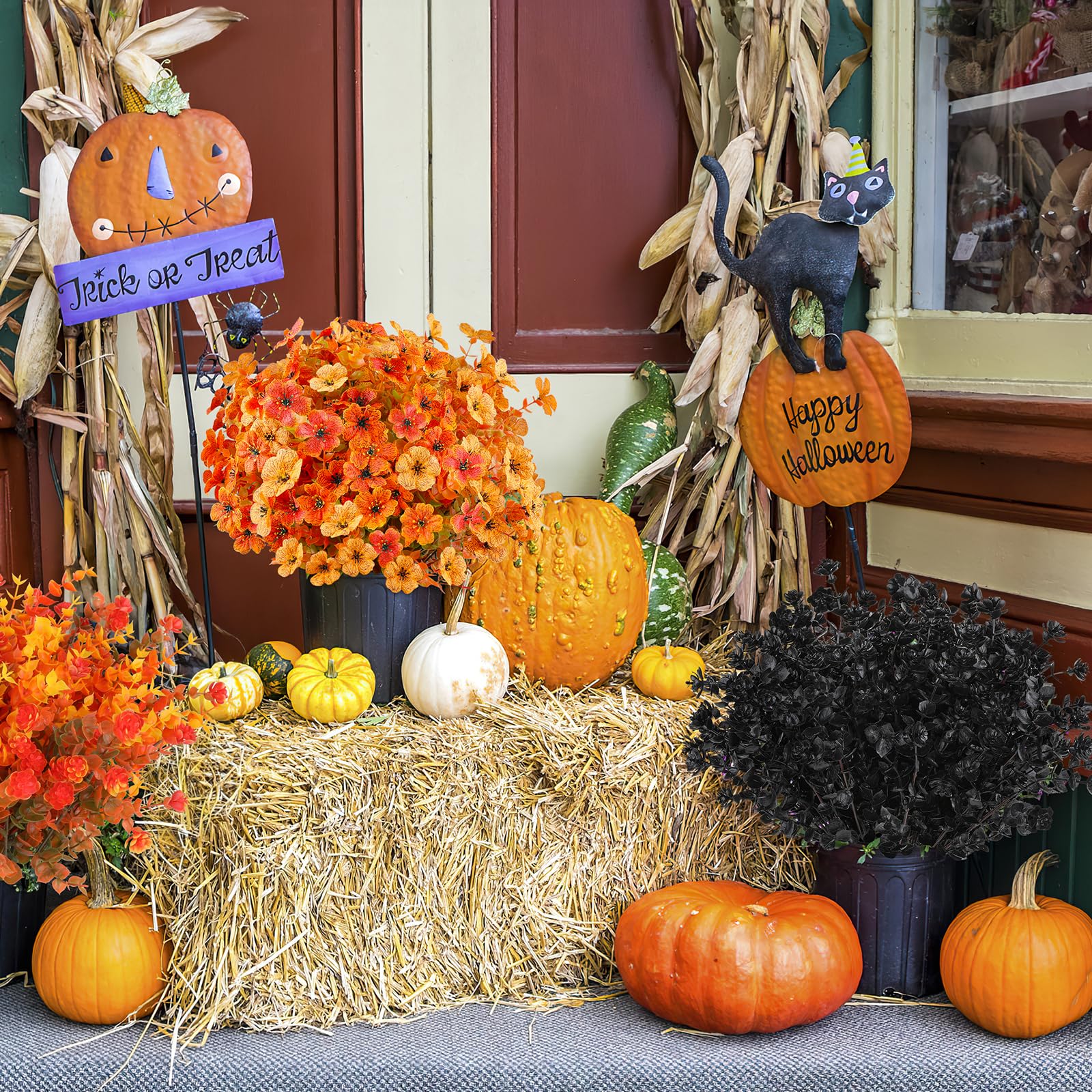 Perfect for Outdoor/Indoor - Plastic flowers are ideal for outdoor porches,walkway,terraces windox box,front yard,pots,hanging planters,gardens,landscape,windowsills, allowing you to have beautiful colors all year around.Also suit for birthdays, Halloween decor, memorial place or grave,they can live anywhere and have withstood heavy rain storms and winds.