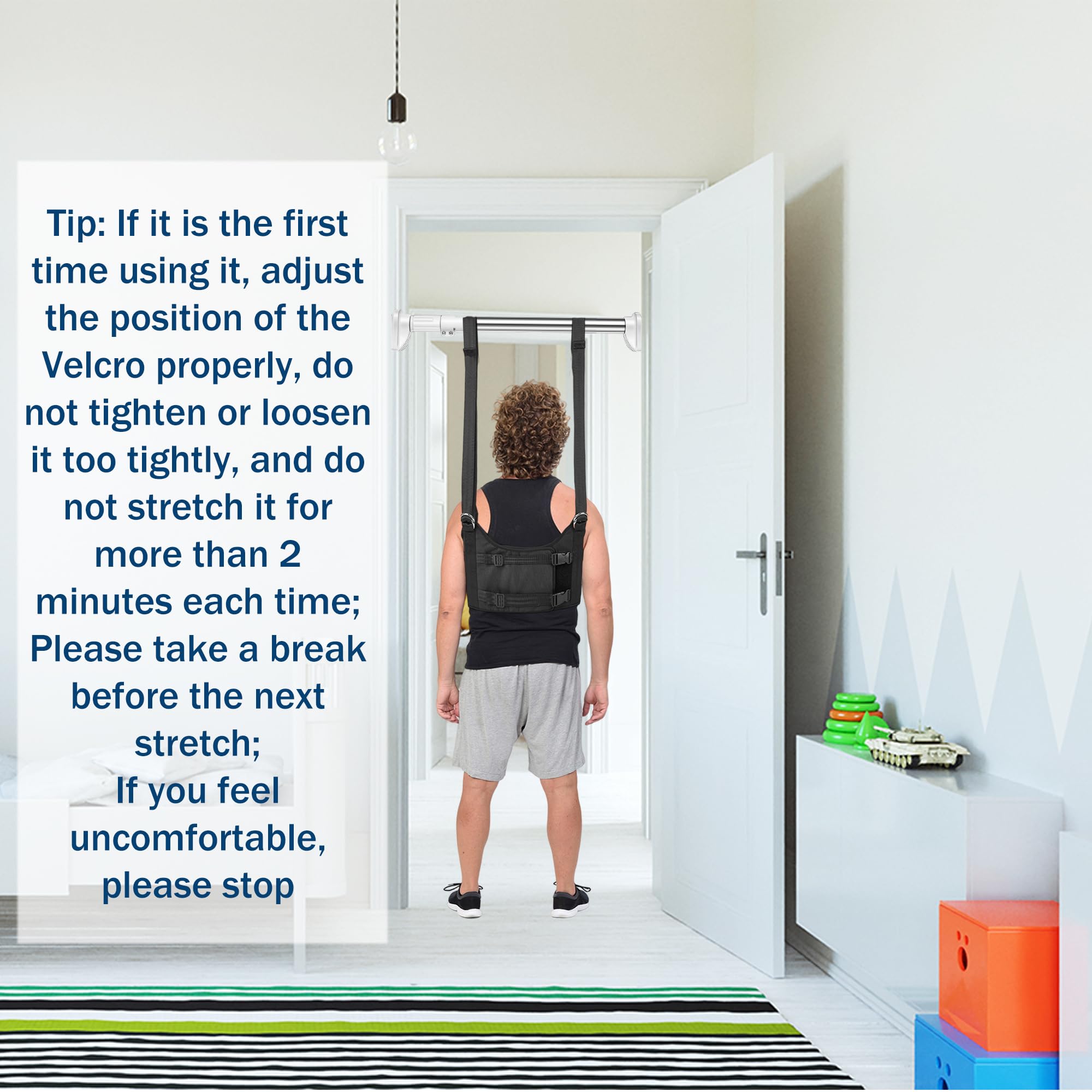 Sturdy Breathable Materials: Crafted from high-quality Oxford cloth with a breathable mesh lining, this lumbar traction device belt is tear-resistant and built to last through repeated stretching sessions without deforming(Pull-up bar not included)