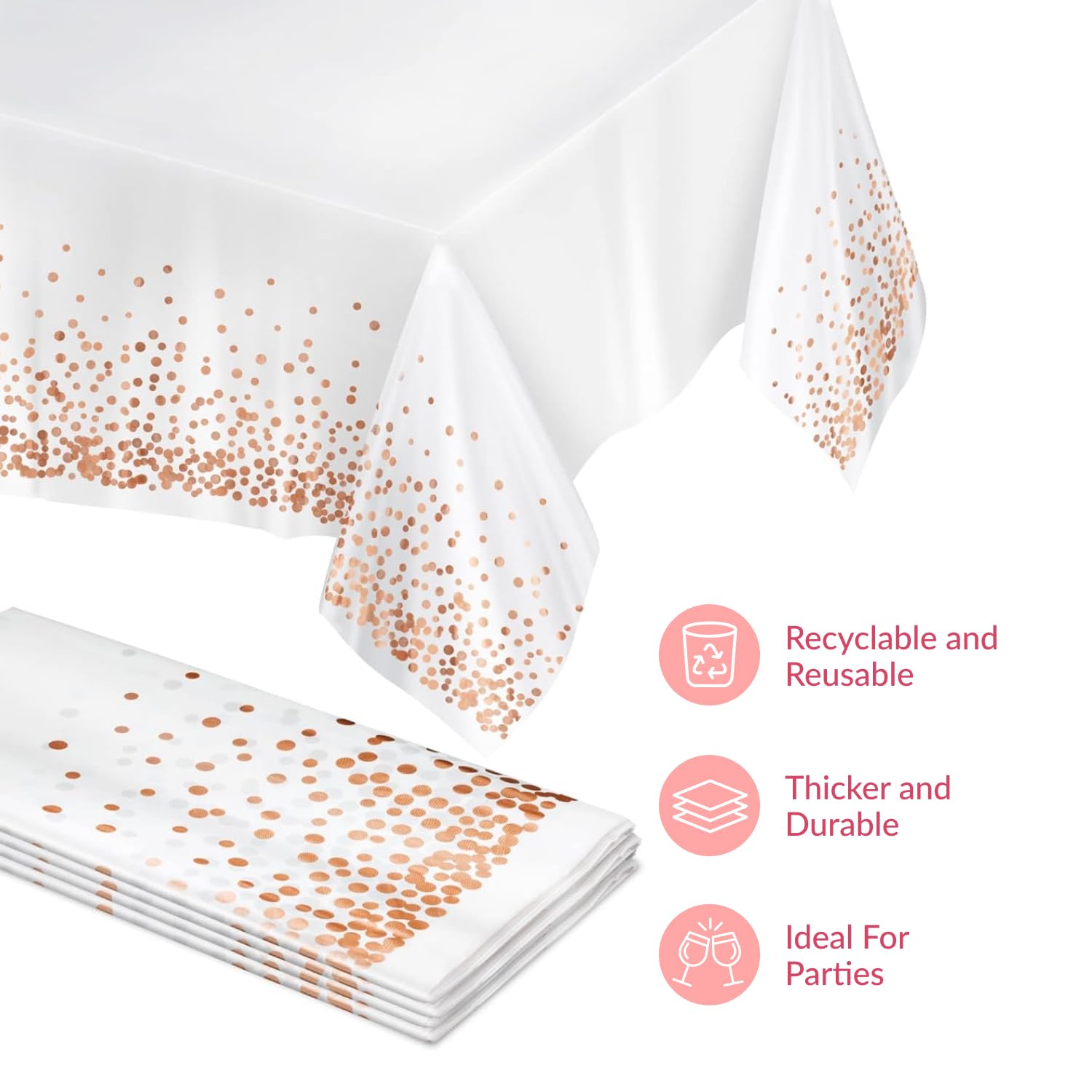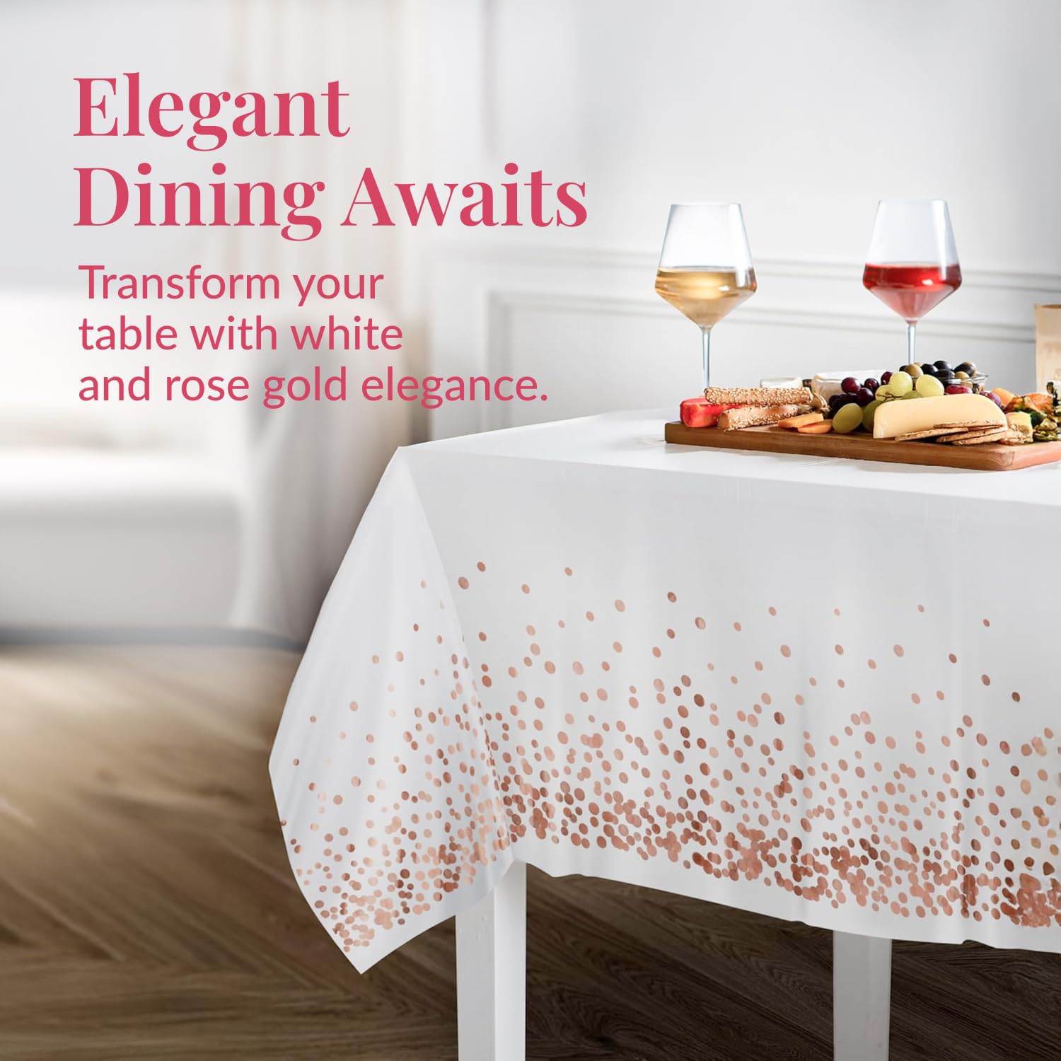 Elegant Rose Gold Decor: Add a touch of elegance to any setting with these rose gold disposable tablecloths; perfect for transforming rectangular tables with a stylish and chic finish