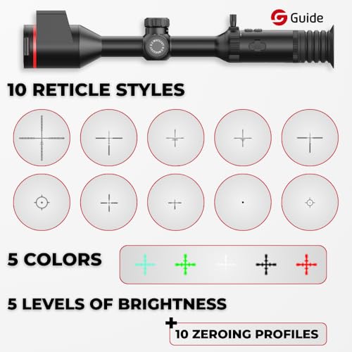 10 reticles options, 7 color palettes with adjustable brightness and contrast for optimal visibility.