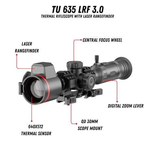 High-performance thermal imaging with 640x512 resolution and 35mm lens for clear visibility in challenging conditions, up to 2800yd detection range