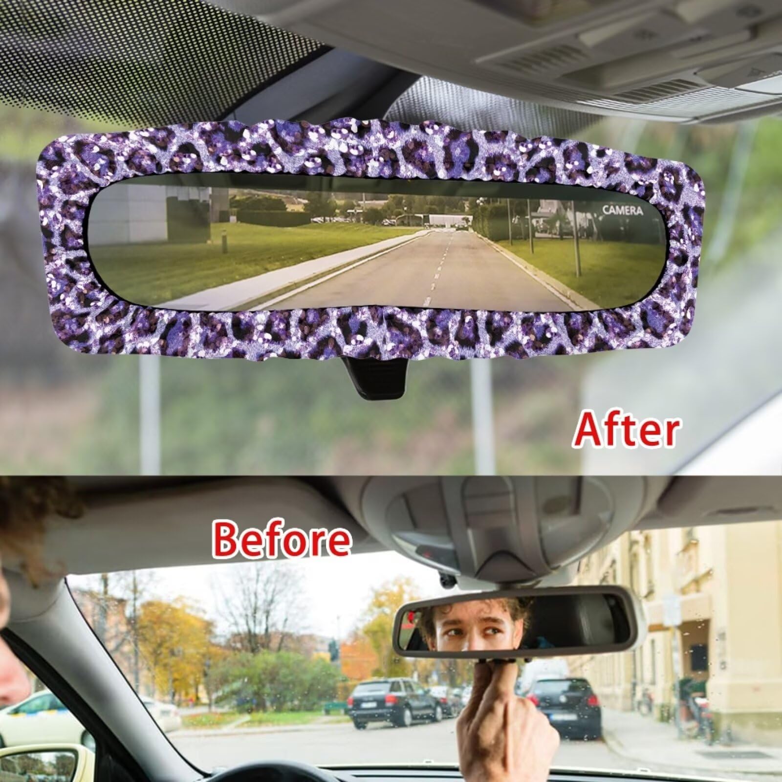 【Simple Installation】:no complicated installation steps, just put it on the rearview mirror to complete the installation. The elastic band design ensures that it will not loosen during long-term use, and the soft material will not wear out the mirror during installation and removal