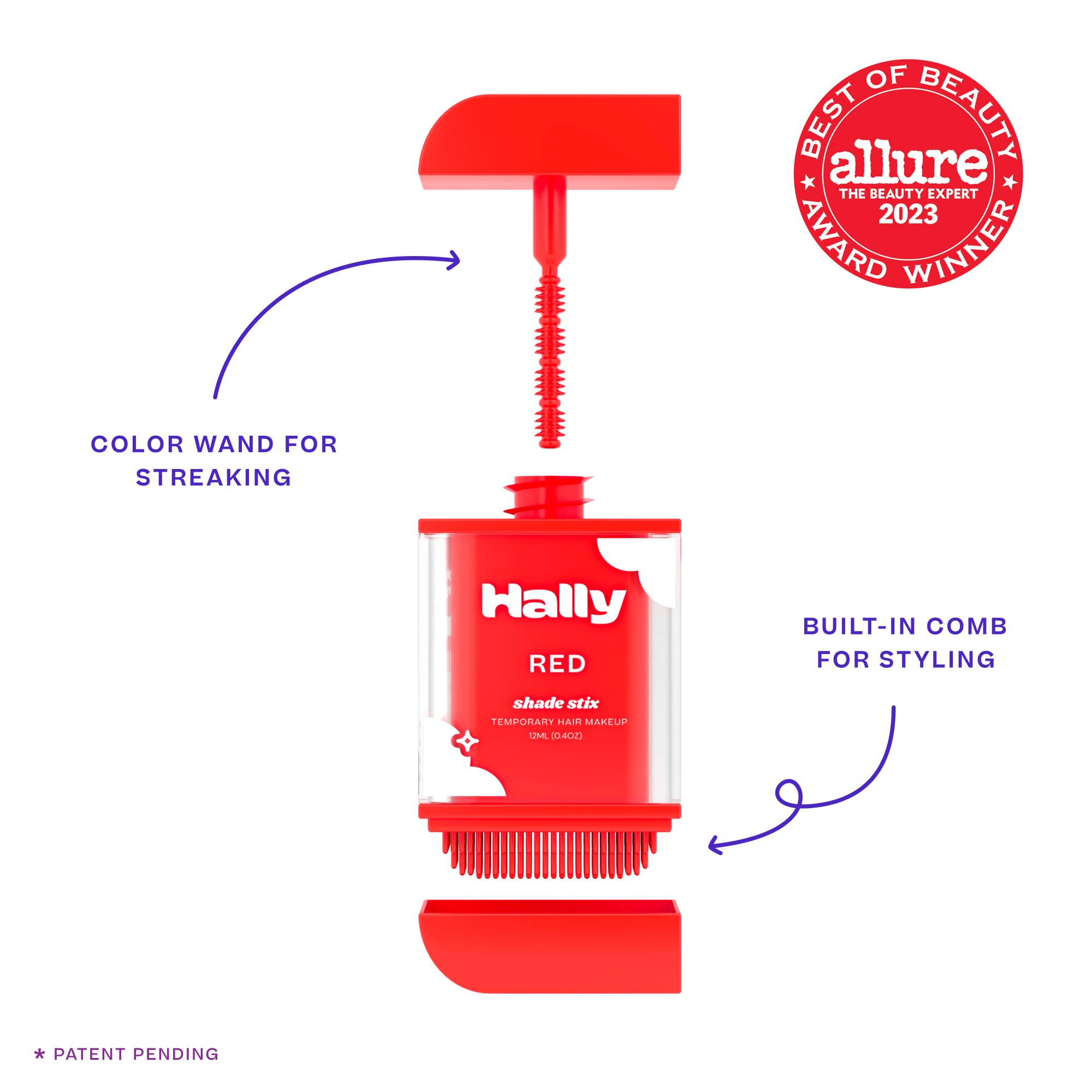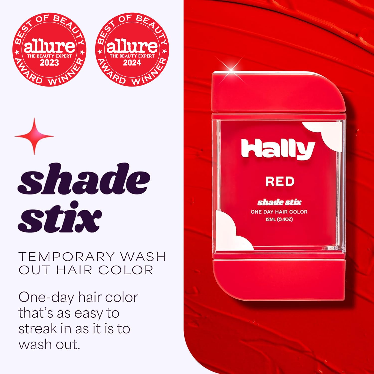 Makeup For Your Hair: Introducing Shade Stix, Hally’s one-day hair color that’s as easy to streak in as it is to wash out! Our temporary hair color is easy to apply and washes out in just 1 shampoo. Now you can ditch the messy hair spray paint and hair chalk! Color: Red