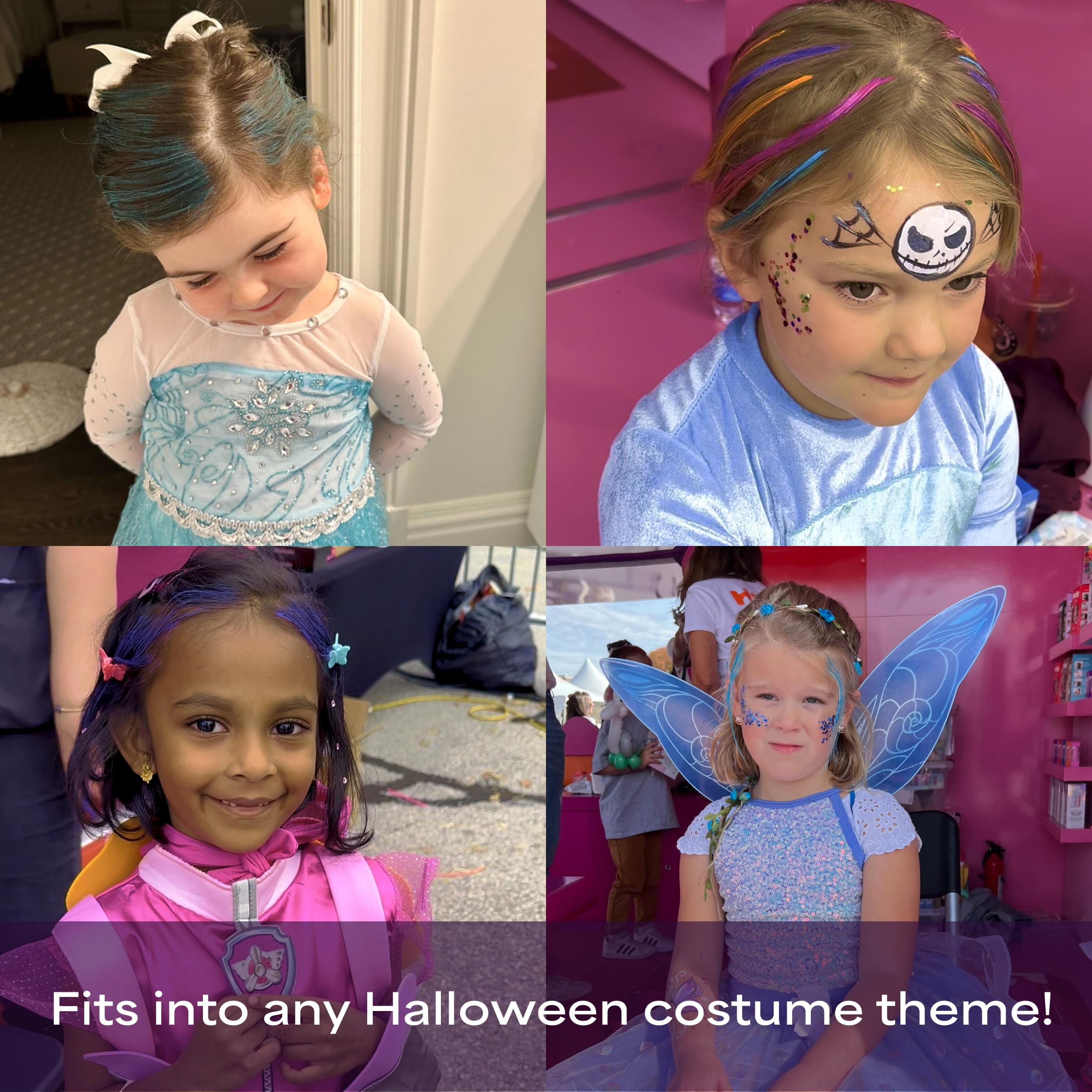 The Perfect Halloween Gift: Give the gift of a one-day transformation! Our washable hair chalk is perfect for Halloween costumes, parties, and spooky events, and it washes out easily with one shampoo.