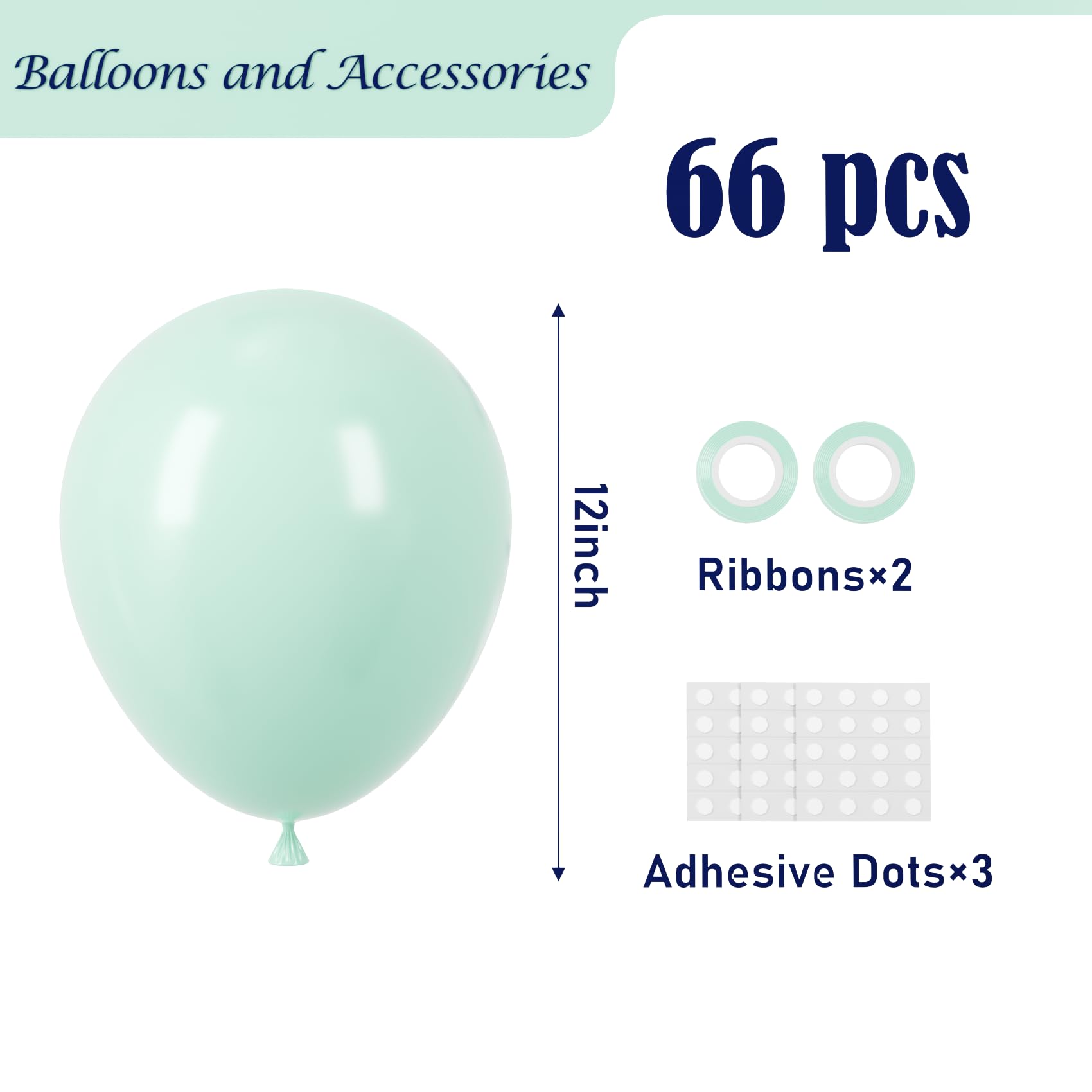 Premium Package: Welcome to the world of mint green balloons, where we offer you a set of 66 pack 12 inch pastel green latex party balloons, 3 sheet of adhesive dots, 2 rolls of ribbons to elevate your celebrations
