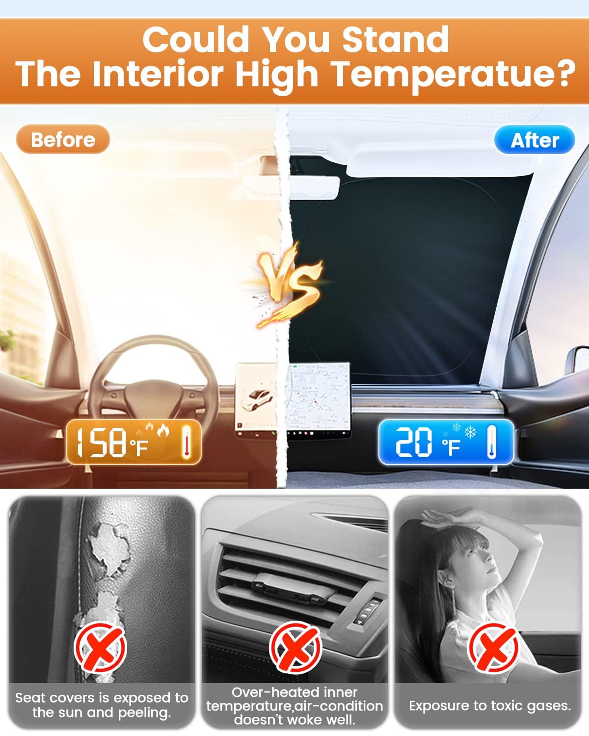 【More Durable & Keep Car Cooler】Did your sunshield lose it's shape in the heat and the steering wheel would get extremely hot?Our windshield sun cover is thick and sturdy instead of thin and bendable, so it will last much longer. Keeps the car so much cooler, protecting your interior.