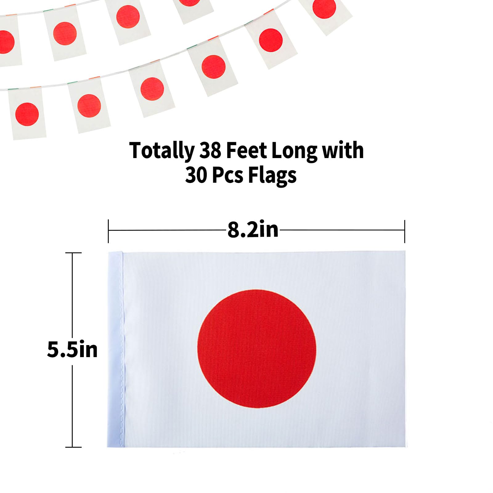 Versatile Decorations: The 38-foot banner includes 30 high-quality Japan flags, perfect for decorating backyards, classrooms, patios, or storefronts during themed events or community festivals.