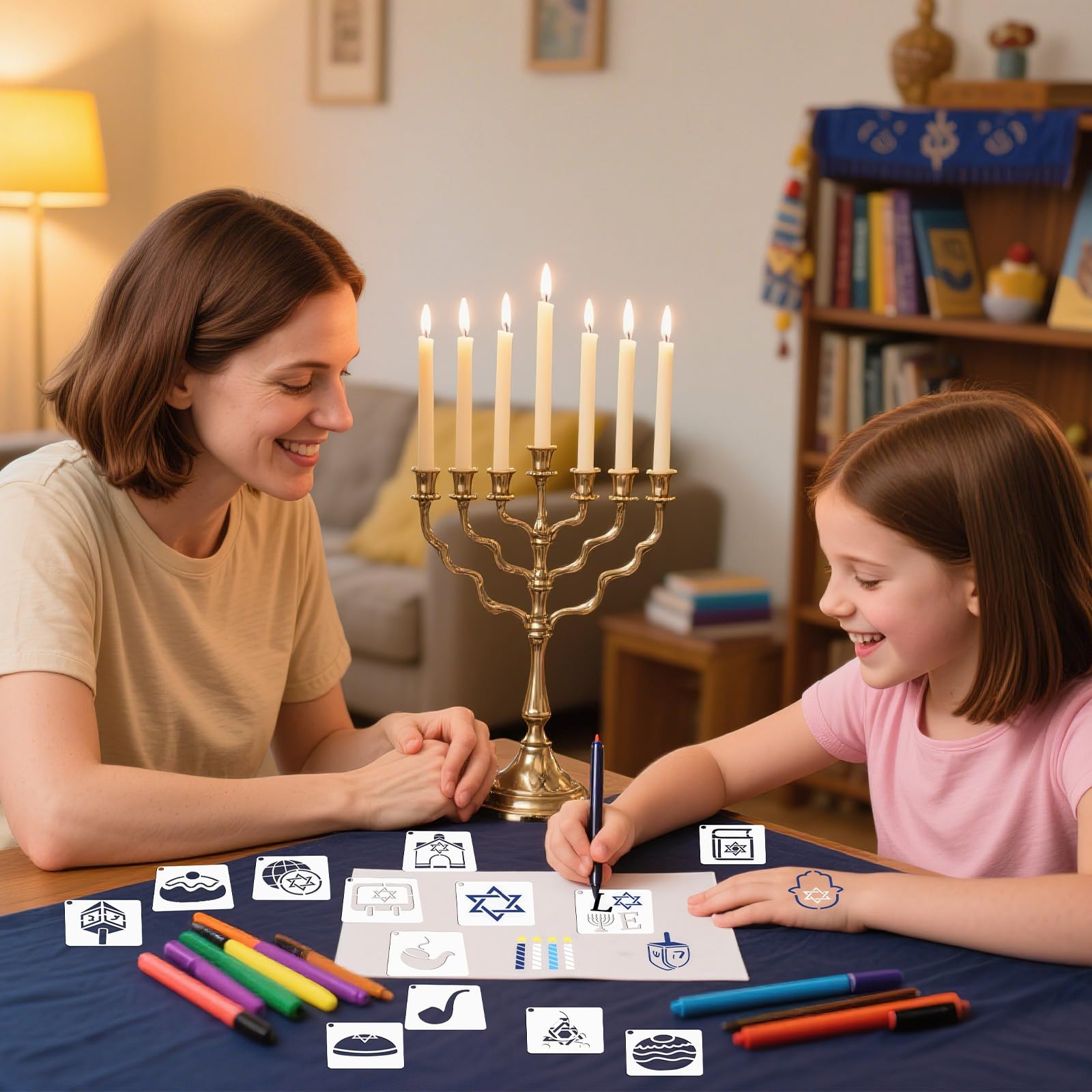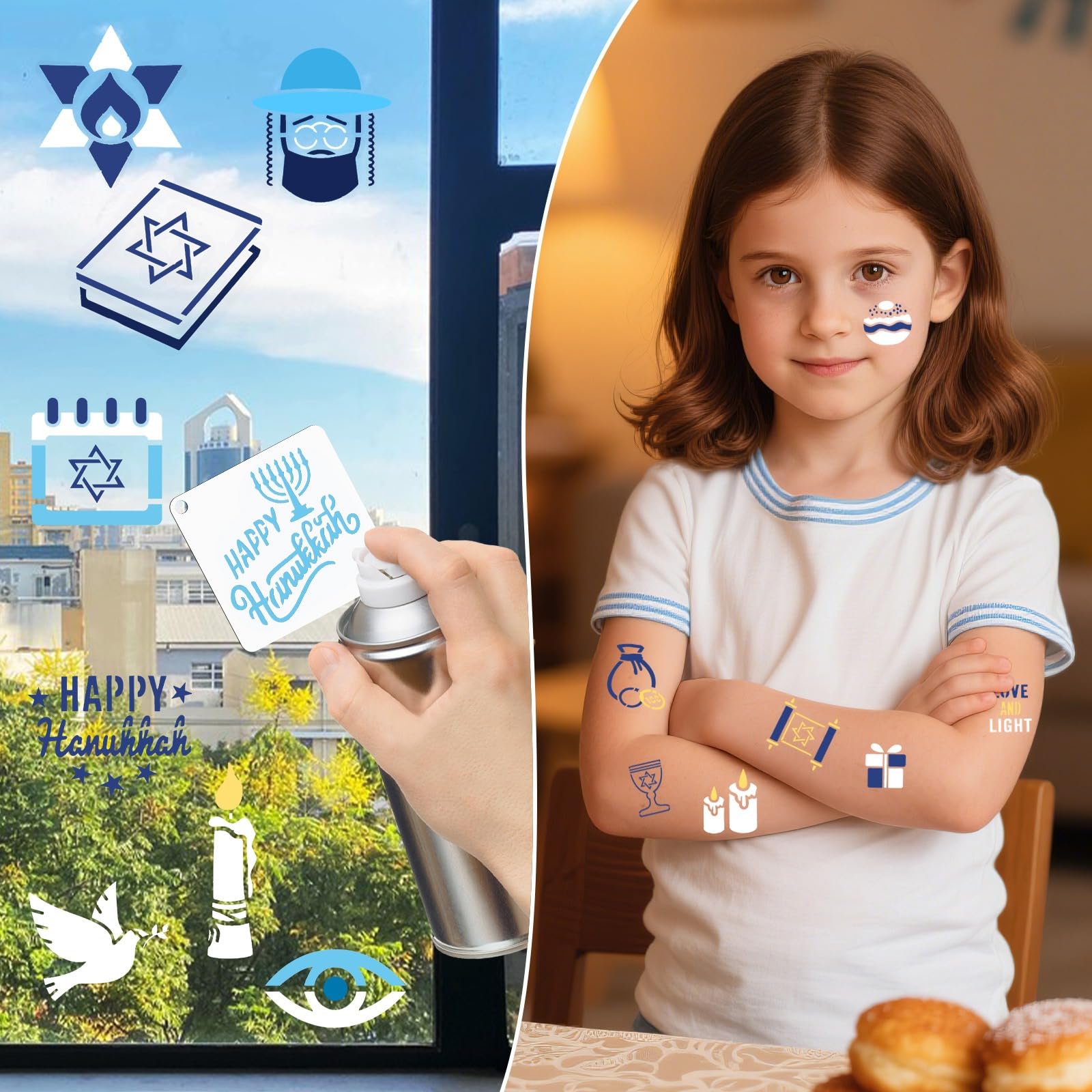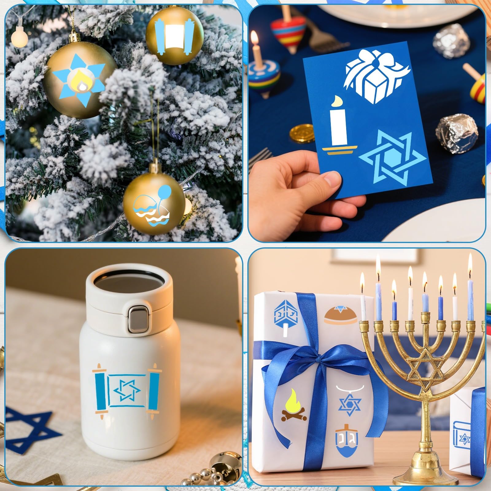 Exquisite Design: This reusable template set contains 56 different designs with the theme of Hanukkah, including Hanukkah menorahs, stars symbolizing light and hope, elements representing festive joy, etc., allowing you to easily create exquisite works
