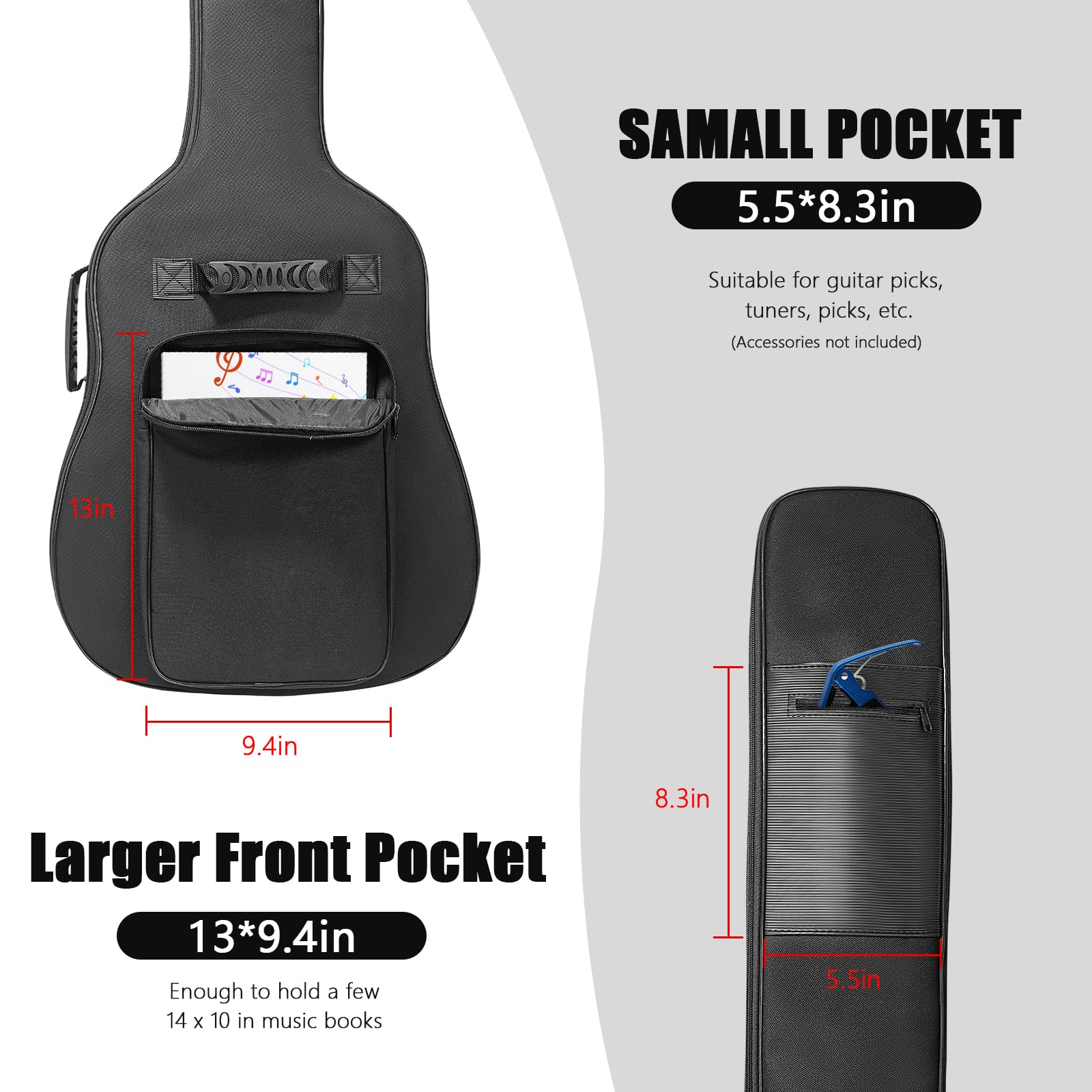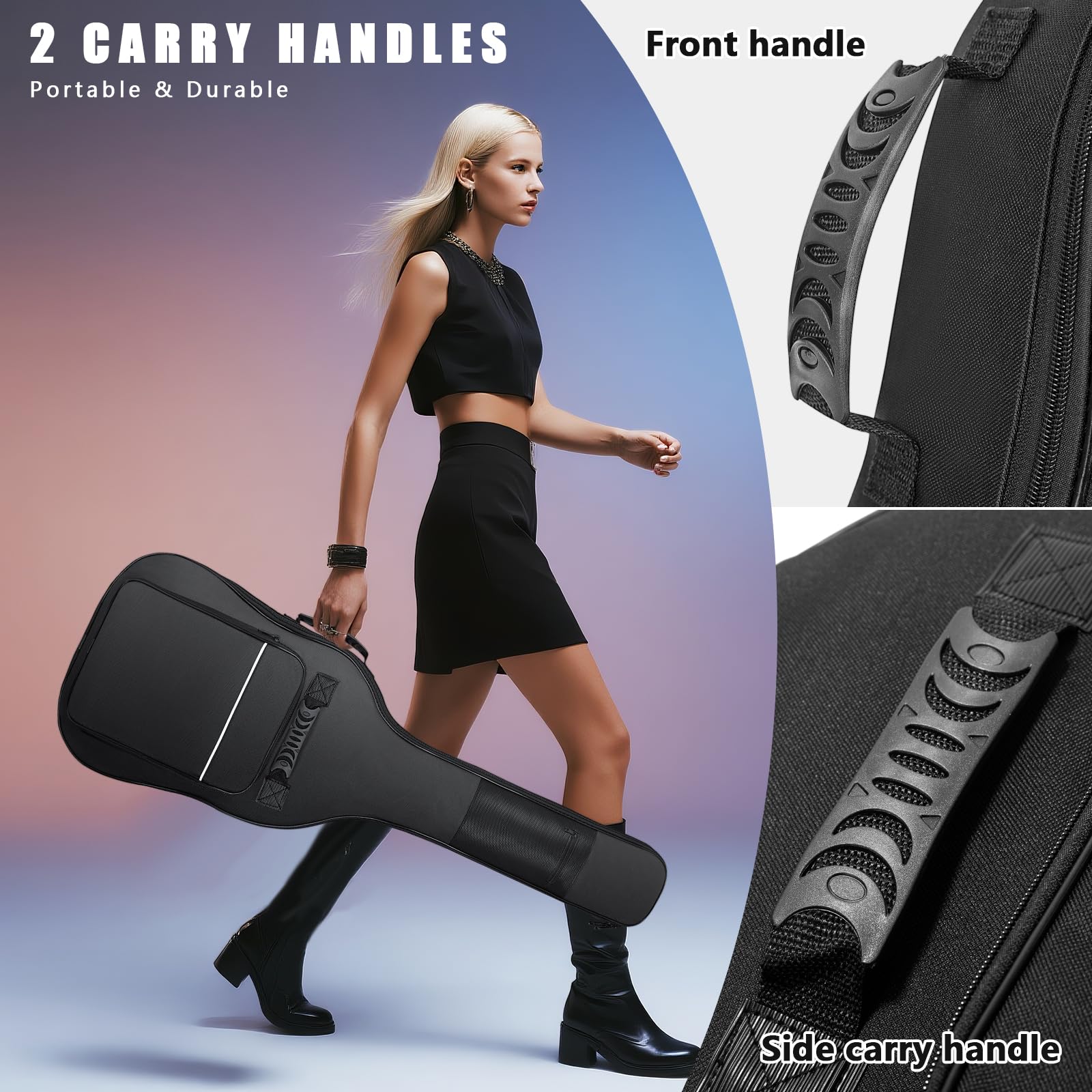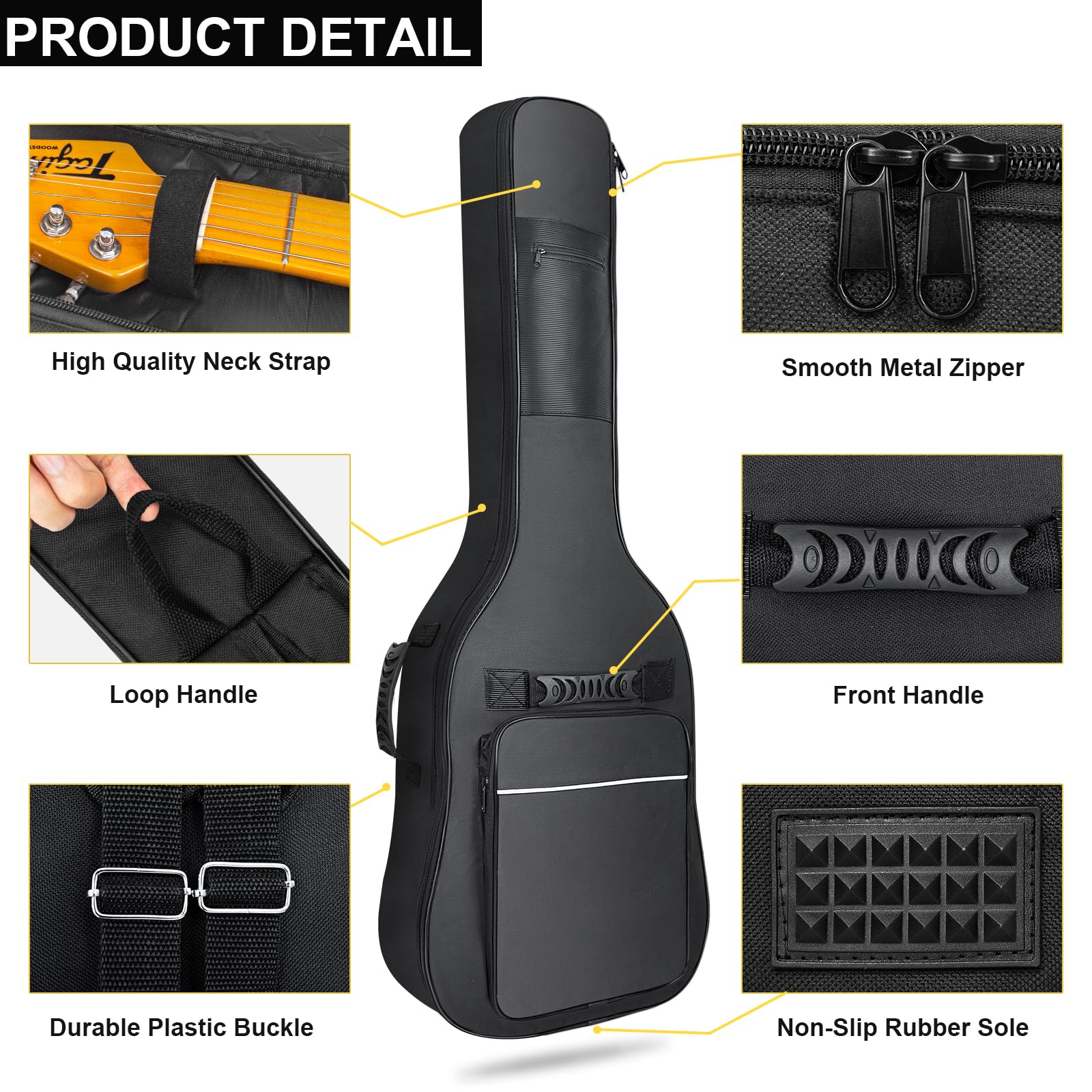 ♪ [Neck Strap&Two-way Metal Zippers] Neck Strap secures guitar to keep it in place, the headstock is safely secured inside the case, saving the guitar from impacts and possible snaps. This guitar gig bag features a two-way metal zipper for easy opening and closing of the guitar case which slide very smoothly, not easily get stuck or break in both directions.