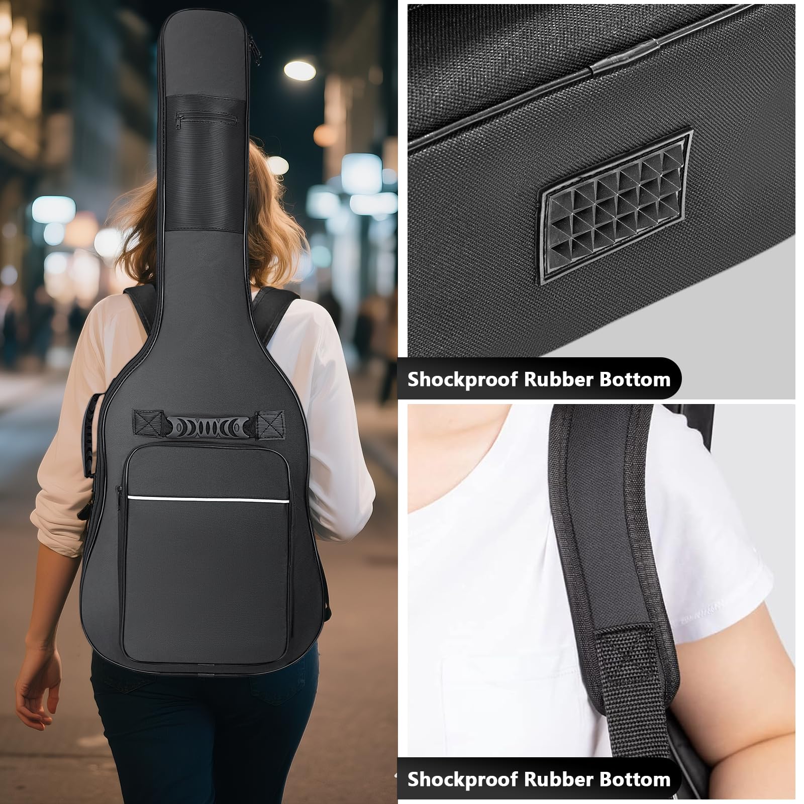 ♪ [Easy to Carry] Dual adjustable backpack shoulder straps & 2 convenient thickened silicone grip handles provide multiple ways of carrying. Back hanger loop can be hung on the wall for decoration when not in use. Shockproof rubber bottom design, Perfectly protects your guitar from unexpected collision, scratches, or other damages in transport.