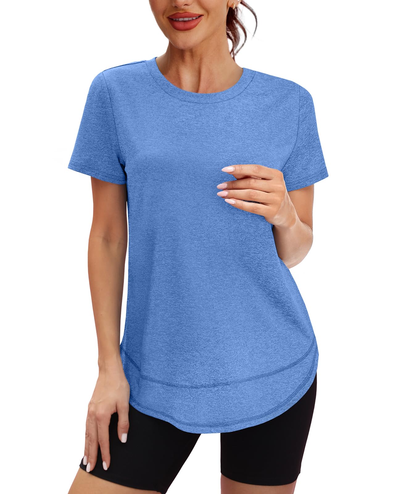 Fabric & Comfort: Crafted from 95% polyester and 5% spandex, this workout shirt offers a soft, breathable, and skin-friendly fit. Its quick-dry and moisture-wicking properties keep you comfortable during intense workouts or outdoor activities.