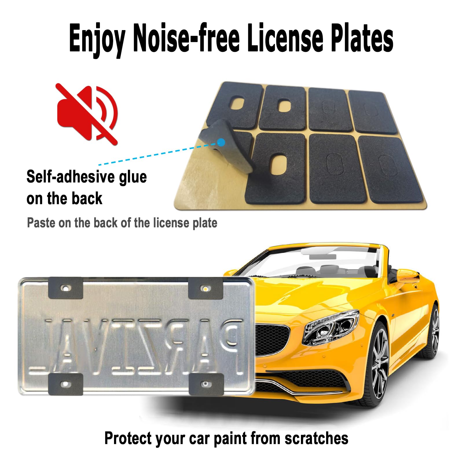 High-Value Car Accessories: The black foam license plate pad can be pasted on the back of the metal license plate to avoid direct contact with the car body, reduce license plate vibration noise, and protect the license plate rattle proof.