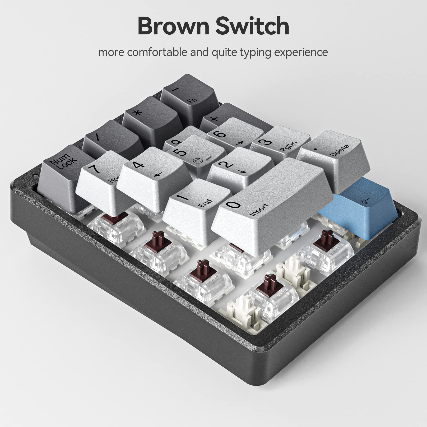 【Unique Mechanical Numeric Keypad Experience】Using a compact keyboard and don't have a number pad for numeric data entry?This Kisnt number pad solves the problem .The idea of having a separate mechanical numeric keypad let you customise your desktop and keep uncluttered.Professional mechanical switch with travel distance ,great tactile feedback,feel sturdy and responsive when in use.