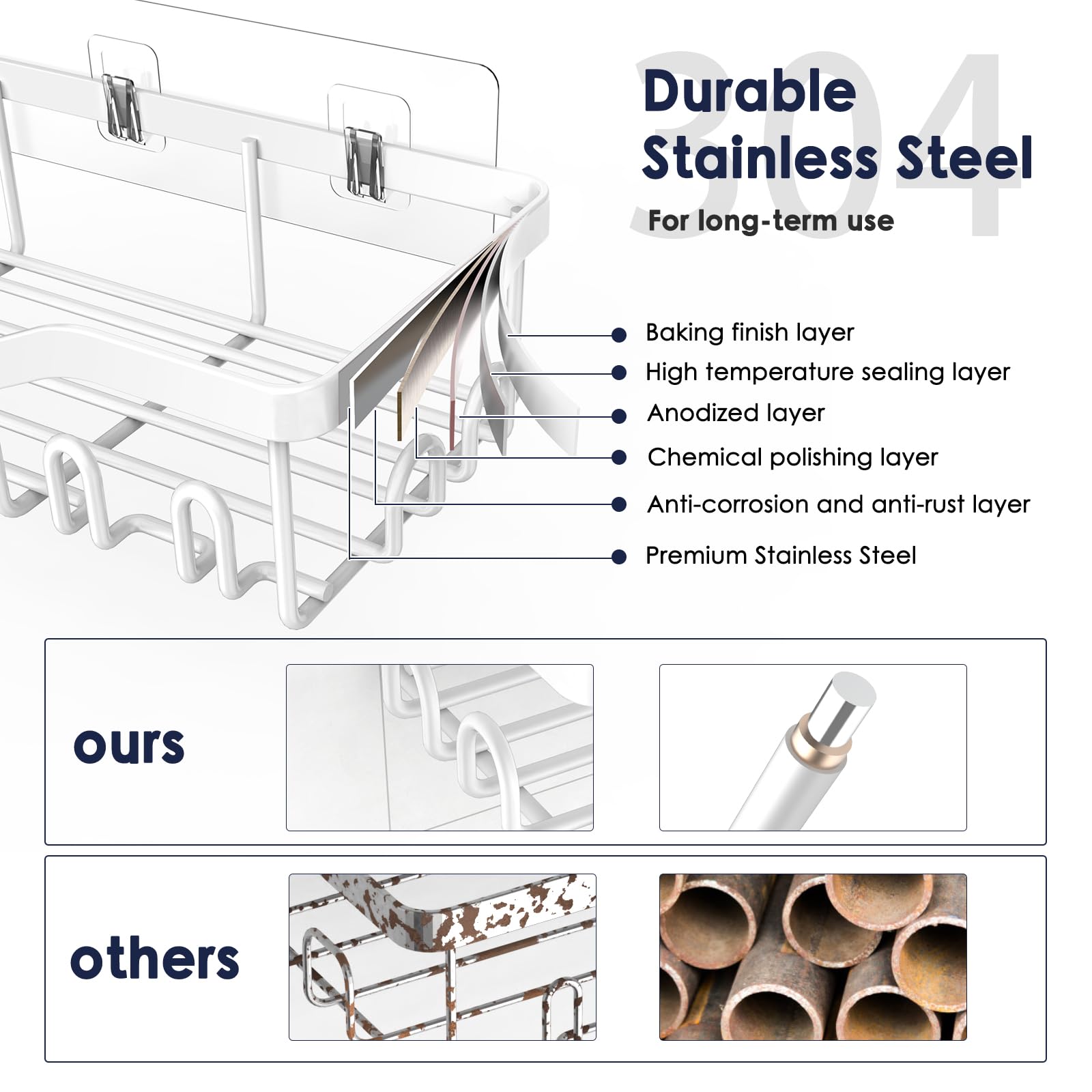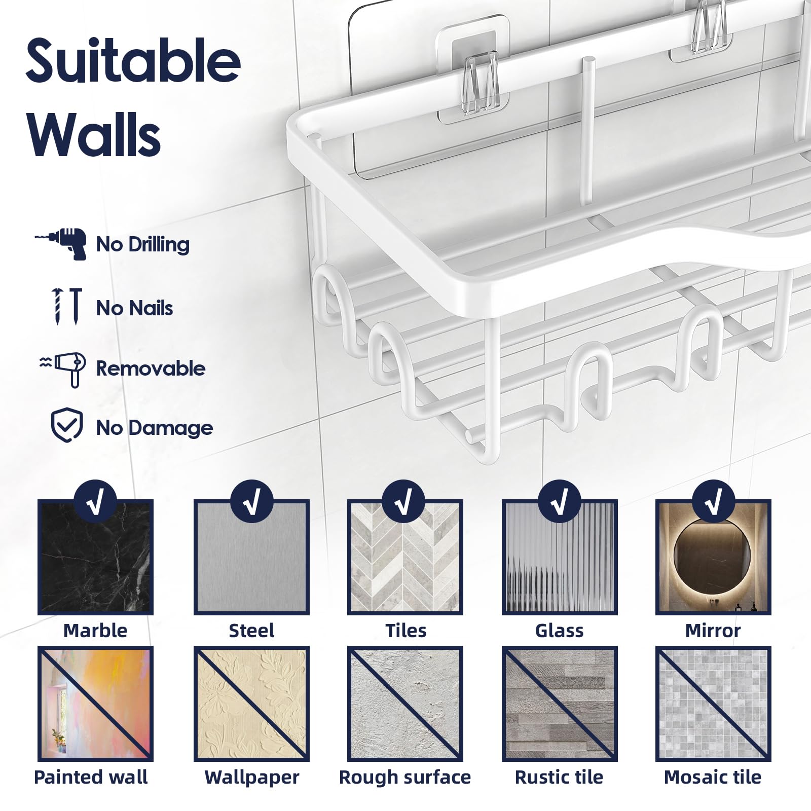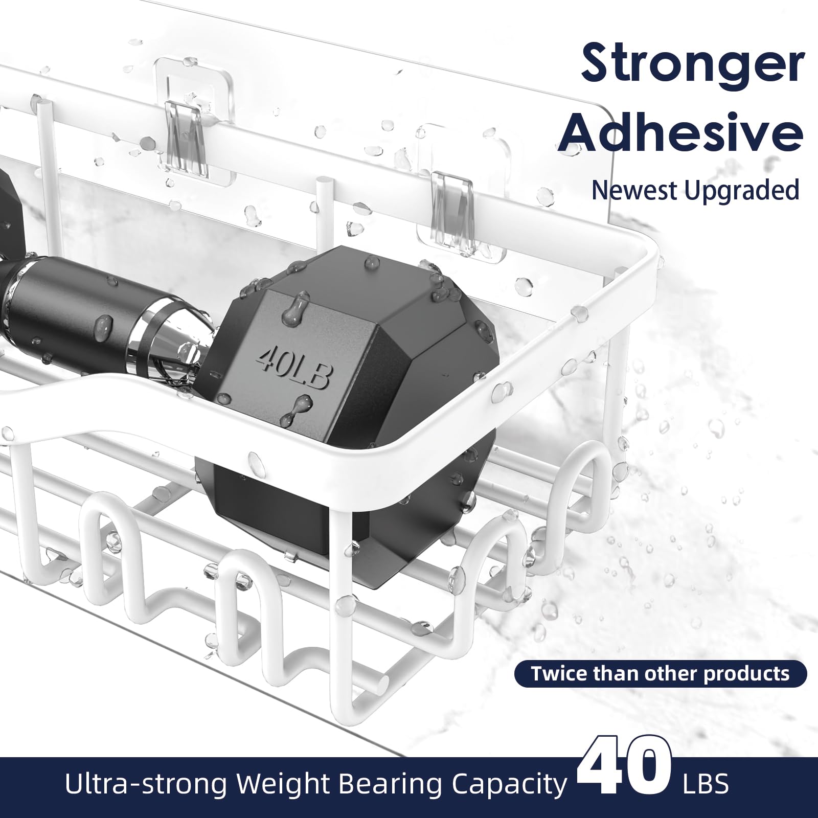 Newest Upgraded Stronger Adhesive Bathroom Caddy: The transparent traceless adhesives give ultra-strong reliability with up to 40 lbs of bearing weight, which is tested by professional institutions. The bathroom shower organizer has twice the load-bearing capacity of the old version. NESOMI bathroom shelf can be installed without drilling. The storage shelves will never worry about falling issues after proper installation, and make your family space use to the extreme