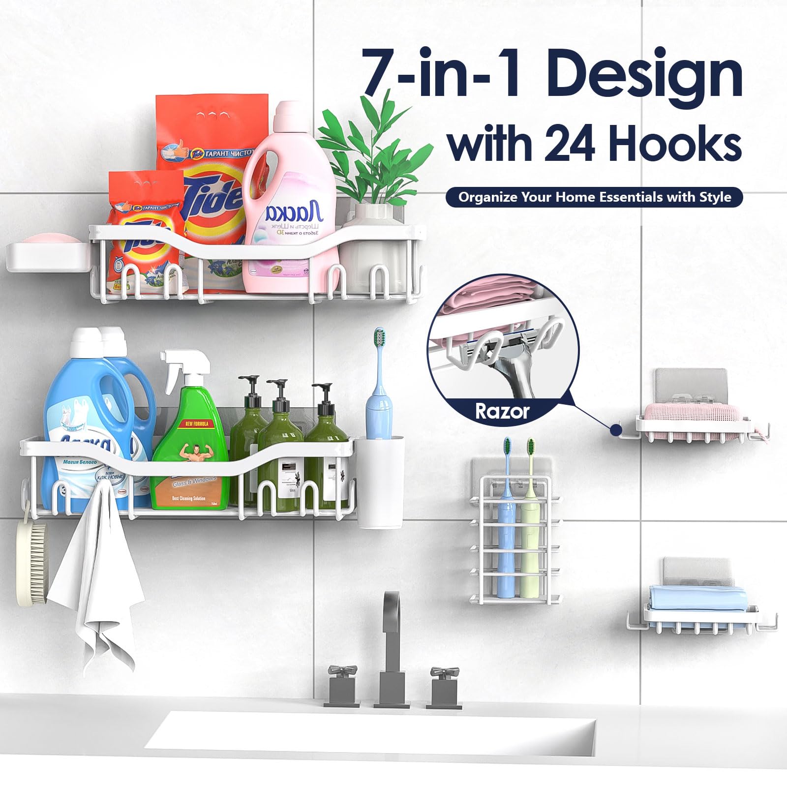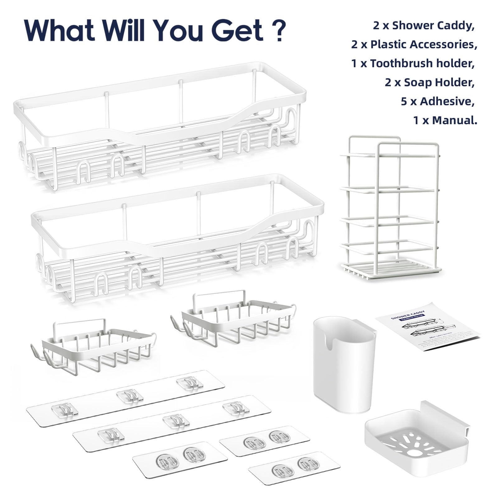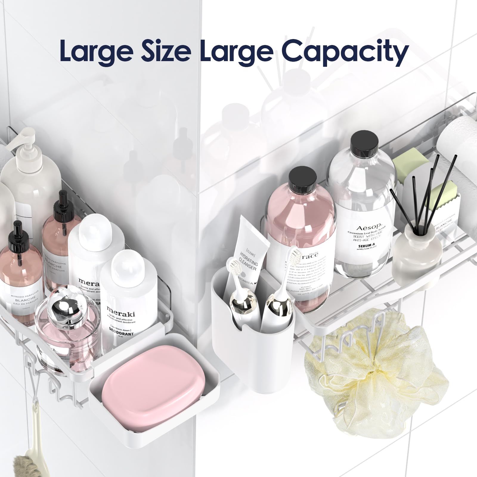 Newest Upgraded Stronger Adhesive Bathroom Caddy: The transparent traceless adhesives give ultra-strong reliability with up to 40 lbs of bearing weight, which is tested by professional institutions. The bathroom shower organizer has twice the load-bearing capacity of the old version. NESOMI bathroom shelf can be installed without drilling. The storage shelves will never worry about falling issues after proper installation, and make your family space use to the extreme