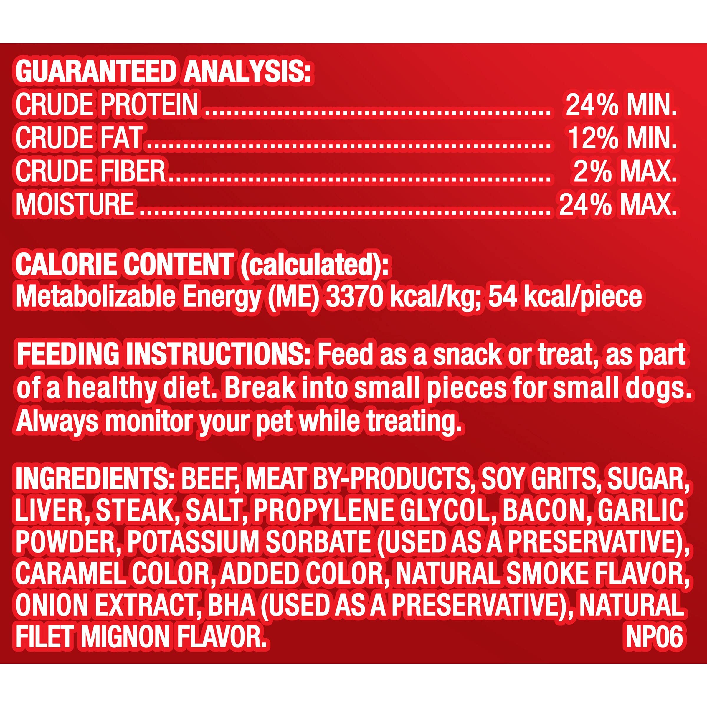 Contains one (1) 22.5 oz. bag of Pup-Peroni Filet Mignon & Bacon Flavor soft dog treats