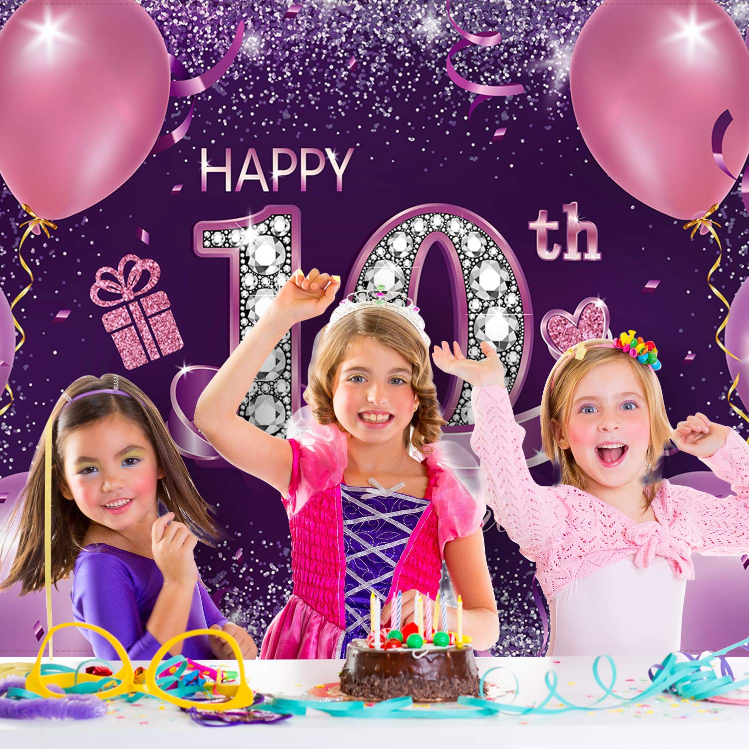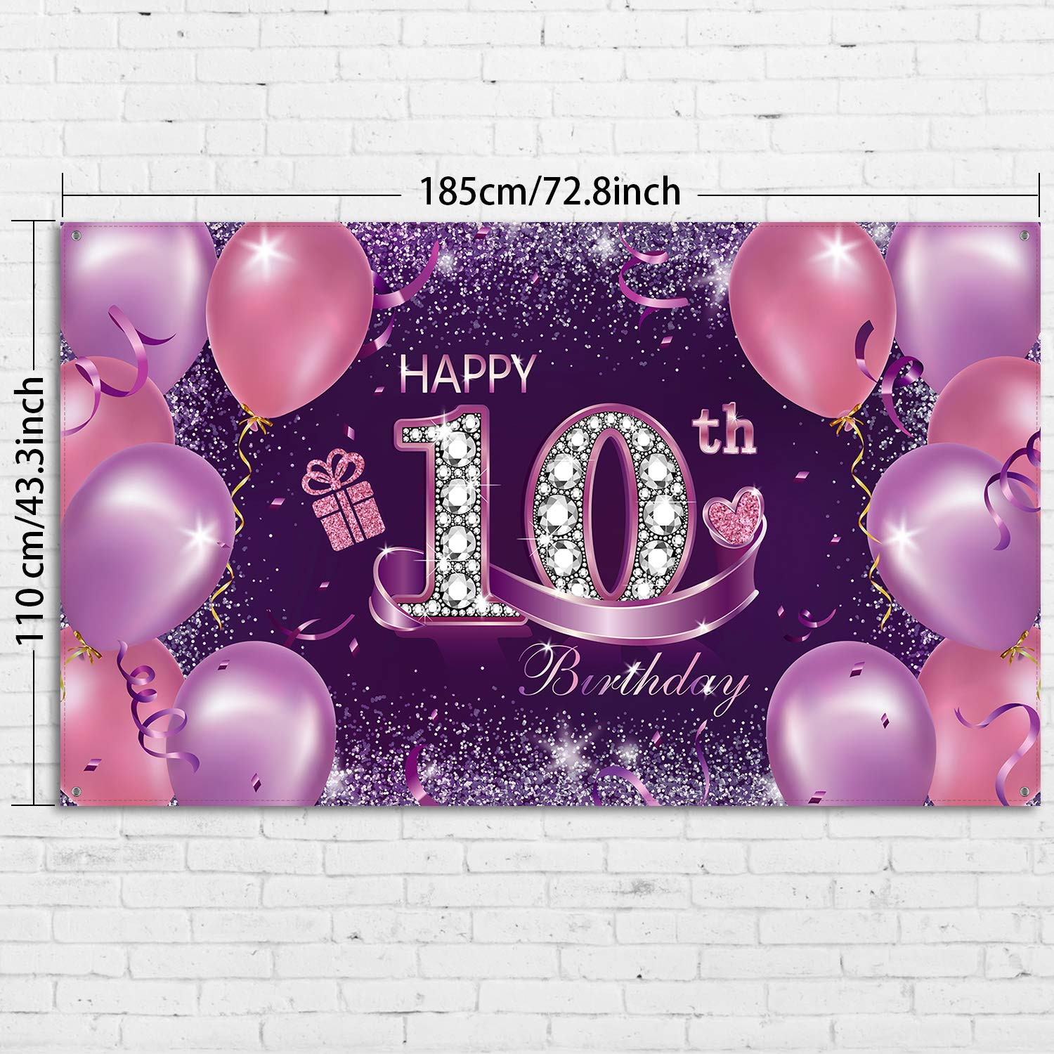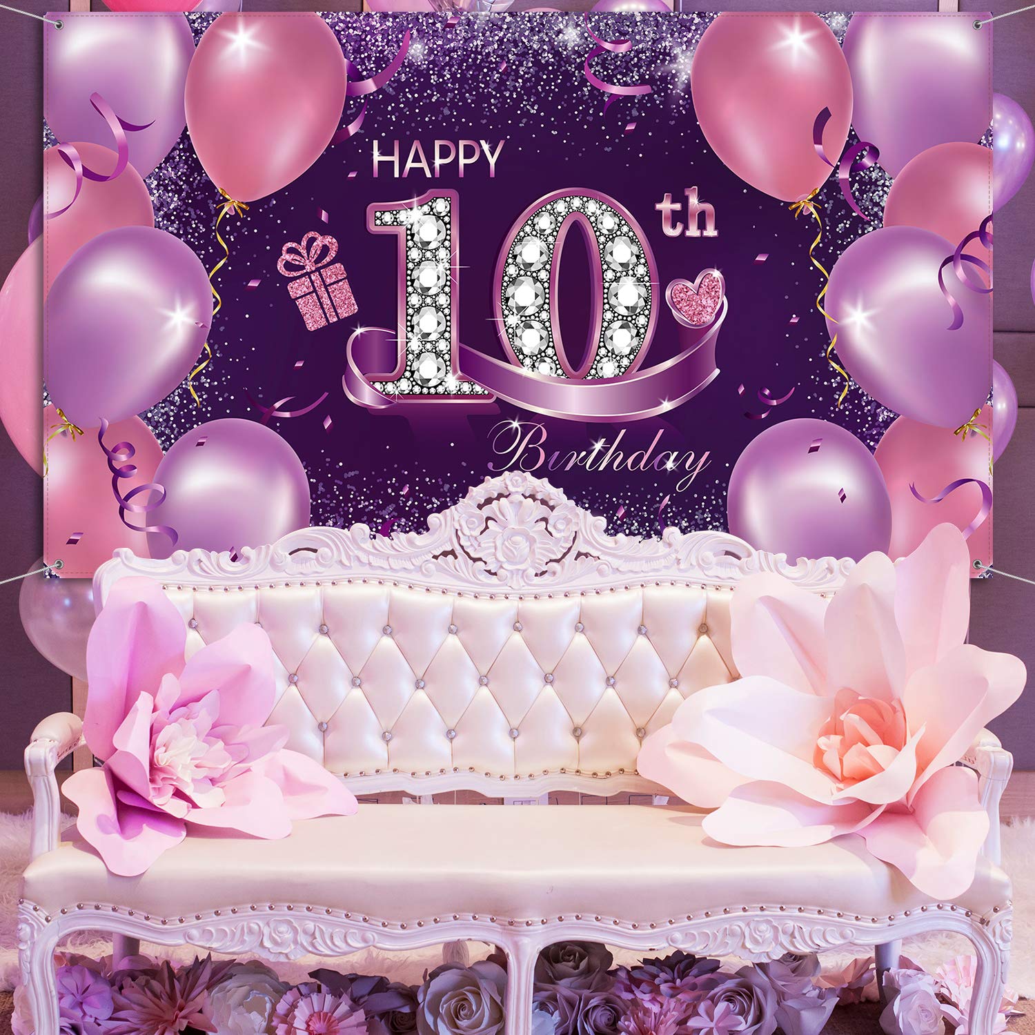 Birthday party essential: elegant design with pink purple and diamond silver birthday party elements, it is an adorable and warm 10th anniversary birthday party banner poster, memorable birthday party supply, also you can write some words on it, makes your birthday party become an impressive event, suitable for indoor or outdoor usage