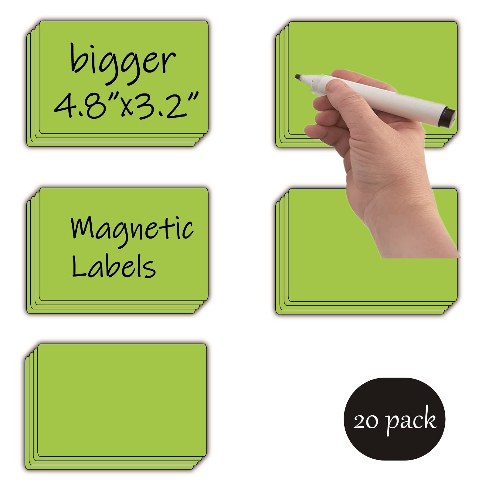 Include:4.8X3.2" Dry Erase Magnetic Labels 20 Pieces.Thick 0.7 mm (27mil).No Residue,No Ghosting