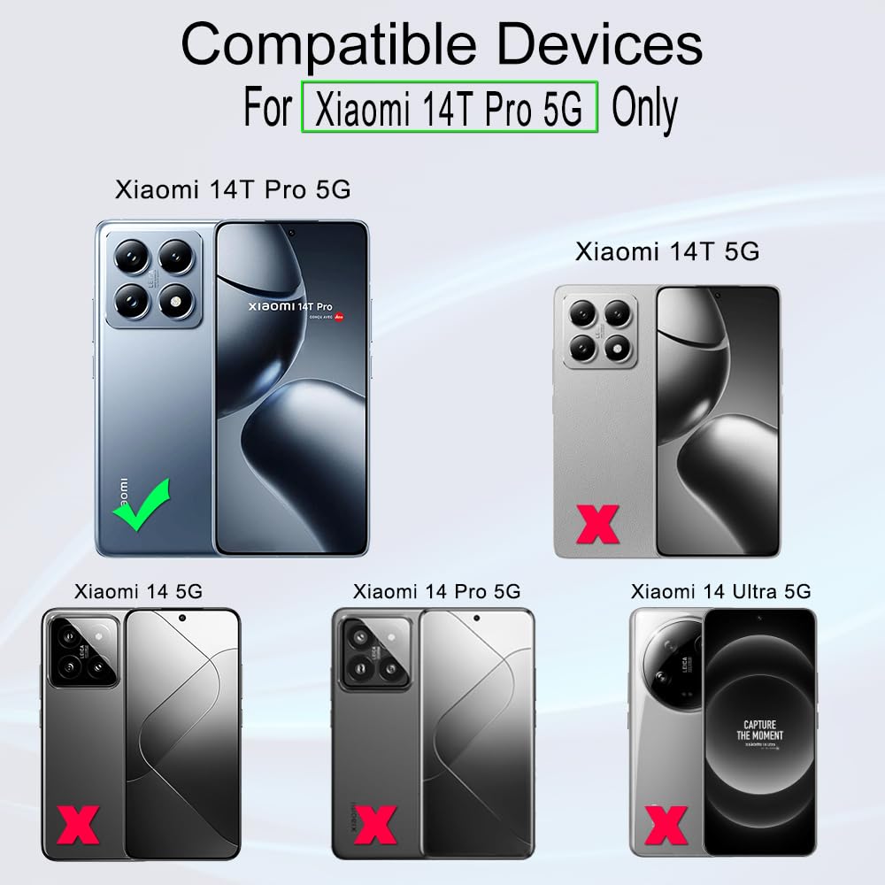 【Confirm Your Model】(Please Check your model in:"Settings-About Phone-Model") This screen protector ONLY COMPATIBLE WITH Xiaomi 14T Pro 5G 6.67".Not for Xiaomi 14T 5G/Xiaomi 14 5G/Xiaomi 14 Pro 5G/Xiaomi 14 Ultra 5G and any other model. if you need other models' protectors, please search in the brand store.