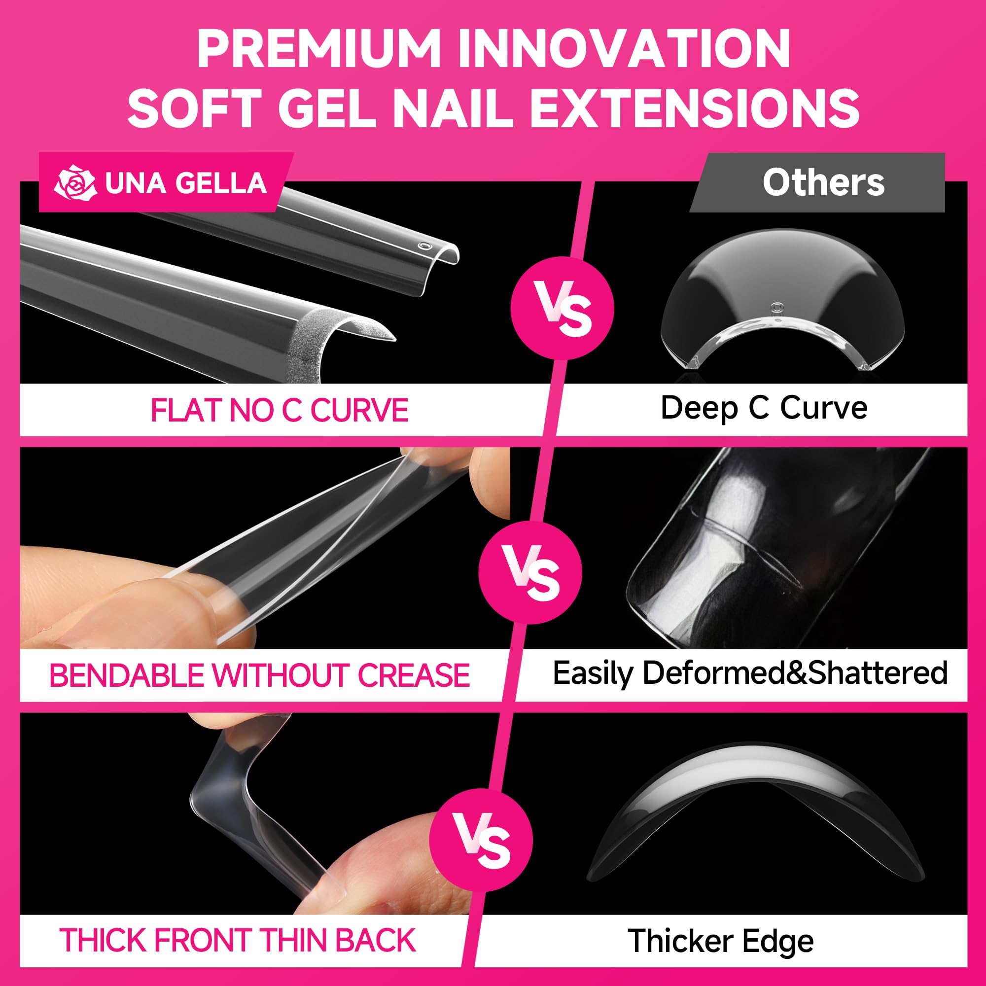 ❤️Wide Range&Long Lasting: Our UNA GELLA coffin gel nails tips can last more than 21+ days according to the right using process. Whether it's a party, gathering, or a DIY nail art session, our coffin gel nails are designed to be versatile. Create various nail art styles effortlessly, ranging from elegant and chic to bold and statement-making.