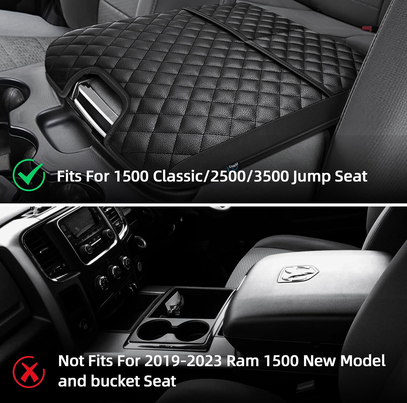 【Custom Fit Design With Pocket】Specifically Compatible with Dodge Ram 2013 2014 2015 2016 2017 2018 Ram 1500 2500/3500 & 2019 2020 2021 2022 2023 Ram 2500/3500/1500 Classic Model, Jump seat console cover perfectly fits the vehicle’s center armrest. Please confirm your vehicle model before purchase