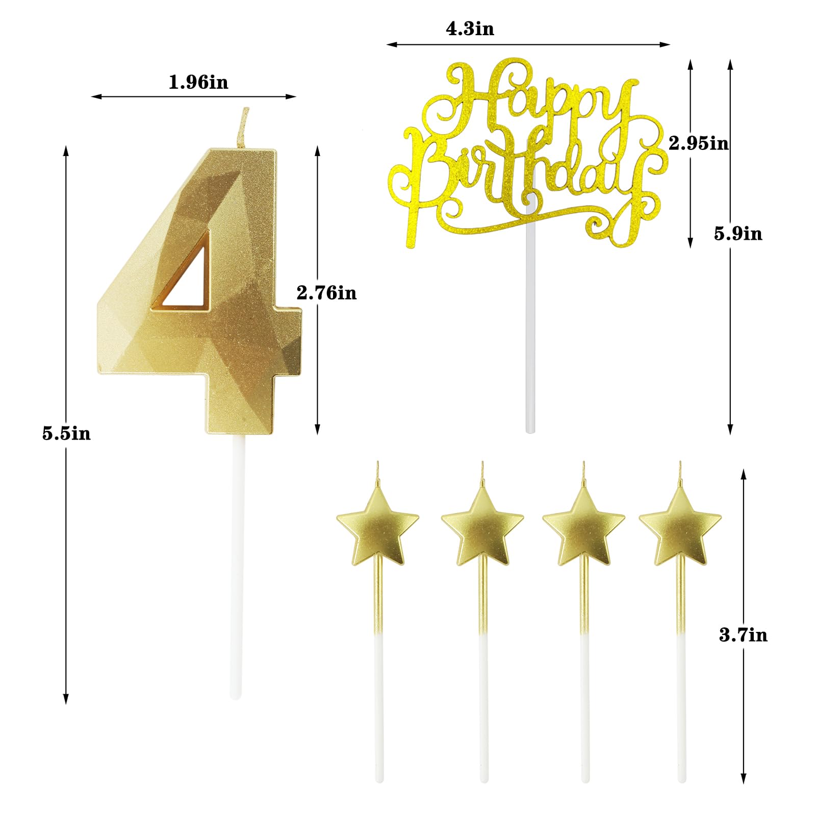 The unique diamond design and gorgeous metallic color of 3D diamond digital candles are suitable for birthday cake decorations of any size. With cute star birthday candles, it looks more unique and beautiful, full of joy. You can choose any number or combination of 0-9, such as 1, 12, 16, 18, 21, 39, 50, 60, etc. Flashing 3D digital birthday candles create unique and unforgettable surprise moments or anniversaries for your birthday party in the dark! product information: Ingredients: environmentally friendly paraffin wax Number birthday candle: 5.5 inches high, 1.96 inches wide, and 0.47 inches thick. Weight: 23g Star birthday candle: 3.7 inches high, 0.11 inches wide, and 0.35 inches thick. Weight: 3g amount of goods: Number birthday candle*2 Star birthday candle*4 Color: Gold | Size: 45 Reminder: Please do not leave lit candles unattended. Keep candles out of the reach of children. Do not place candles on or near flammable materials. Guarantee: Our customer service will provide you with service at any time. We promise to return and exchange unconditionally, and high-quality products and services are our top priority.