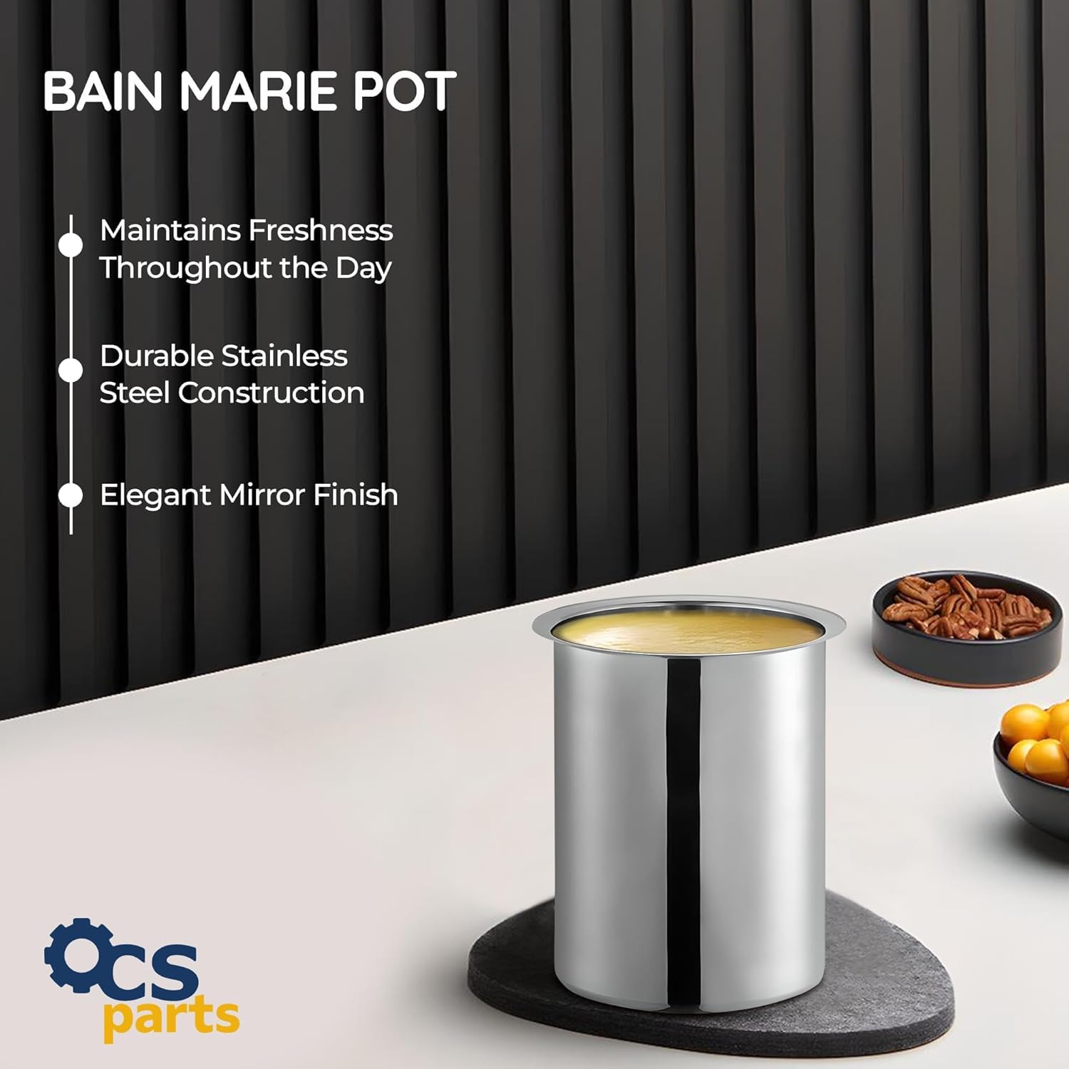 Serve up your best dishes with the OCS Parts Bain Marie Pot. Made from durable 18/8 stainless steel, this pot is perfect for keeping food fresh and at the ideal serving temperature throughout the day. Its versatile design allows for use alone, in soup warmers, salad and buffet bars, or steam tables, making it suitable for both hot and cold temperature retention. The bright, elegant mirror finish adds a touch of sophistication, while the durable construction ensures longevity. Heat and store food in the same container for added convenience, and enjoy easy cleanup by simply sealing the pot after use. This bain marie pot is an essential addition to any kitchen, perfect for sauces, soups, and organizing cooking utensils.